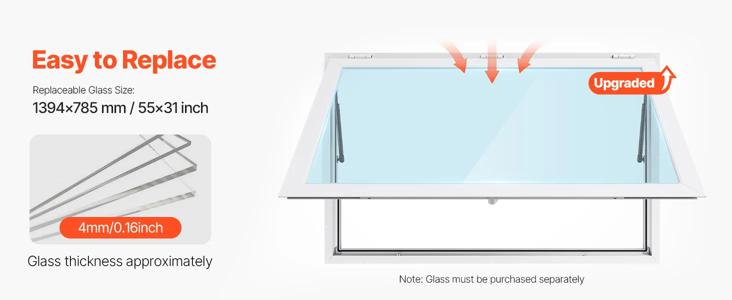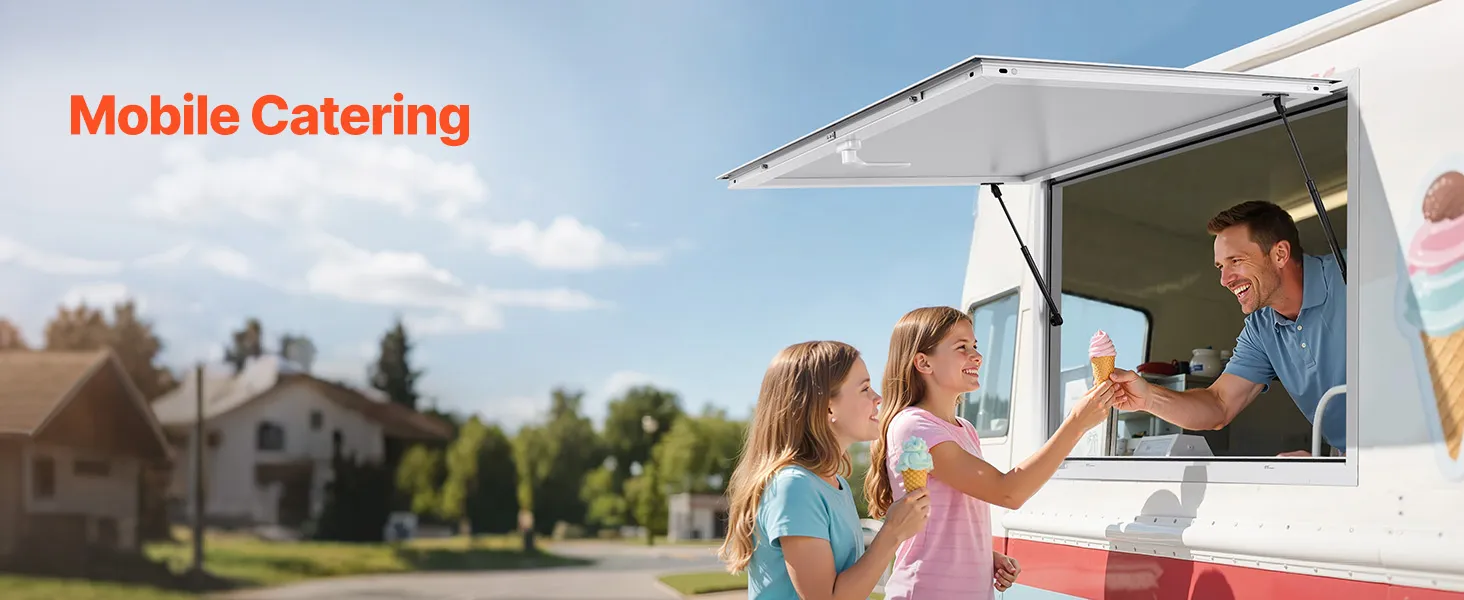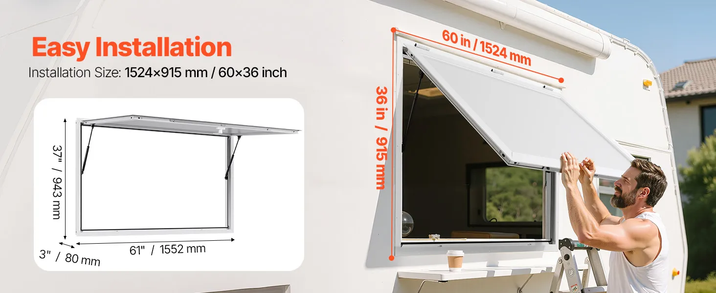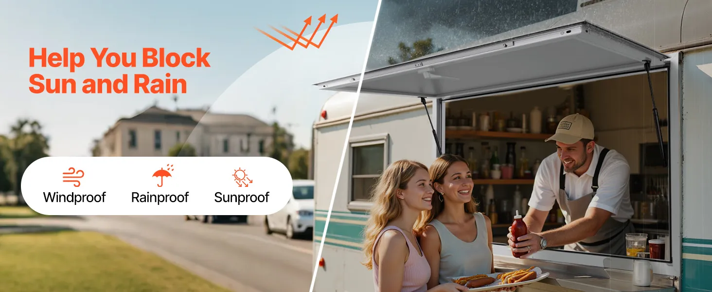 Q1: Are the window dimensions precise? Will it fit my food cart/counter?A1: Strict size control! The window frame installation size is 1524x915 mm / 60x36 inch, suitable for standard food cart/counter openings. Please measure your installation space before purchasing.Q2: Is the aluminum composite panel prone to cracking or scratching?A2: Highly durable! The upgraded 2.5mm aluminum composite panel is sturdy and impact-resistant, outperforming ordinary materials and able to endure bumps, high heat, and oily environments.Q3: Can the hydraulic rods stably support an 85° opening angle?A3: Dual hydraulic rods provide strong support! Using 420 series hydraulic rods (150mm stroke), the window opens and closes smoothly and can stay suspended at any angle—ideal for frequent use scenarios.Q4: Are the locking points prone to rusting?A4: Galvanized anti-rust treatment! Locking points feature a zinc alloy coating and pass a 72-hour salt spray test, offering better rust resistance than ordinary locks for long-term outdoor use without worry.Q5: Does it include a screen? How do I clean it?A5: Designed for easy maintenance! This version does not include a screen. The window surface can be cleaned with a damp cloth. The frame has a white powder-coated finish that resists oil stains.