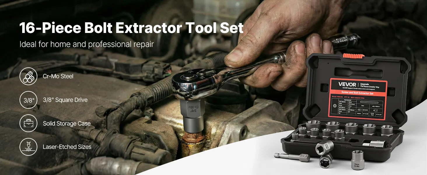 Our bolt extractor set includes common sizes and accessories, so you are ready for most removal tasks without switching tools.