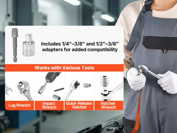This nut extractor socket set is designed to integrate seamlessly with standard workshop tools for flexible and efficient use.