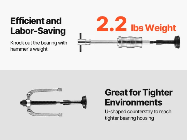 Our slide hammer bearing puller has two flexible methods for detaching fastening bearings. The sliding hammer efficiently detaches parts, while the U-shaped counterstay easily navigates narrow spaces to pull out bearings effectively.
