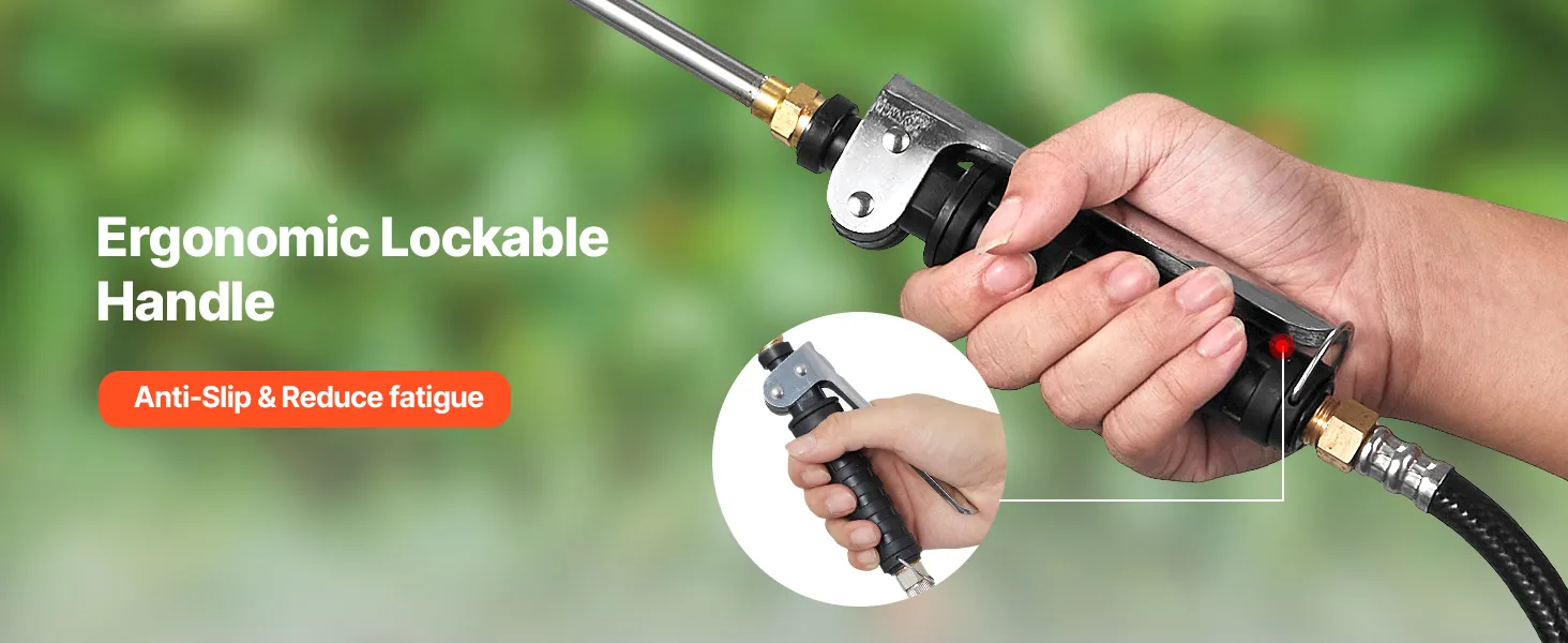 • User-friendly Designs: Every detail for this lawn sprayer is designed for your convenient use. The enlarged water inlet with a filter screen helps you add liquid easier, and the tank with gallon markers lets you know the inner capacity clearly. Besides, the handle features a grommet, making it lockable to spray continuously without fatigue