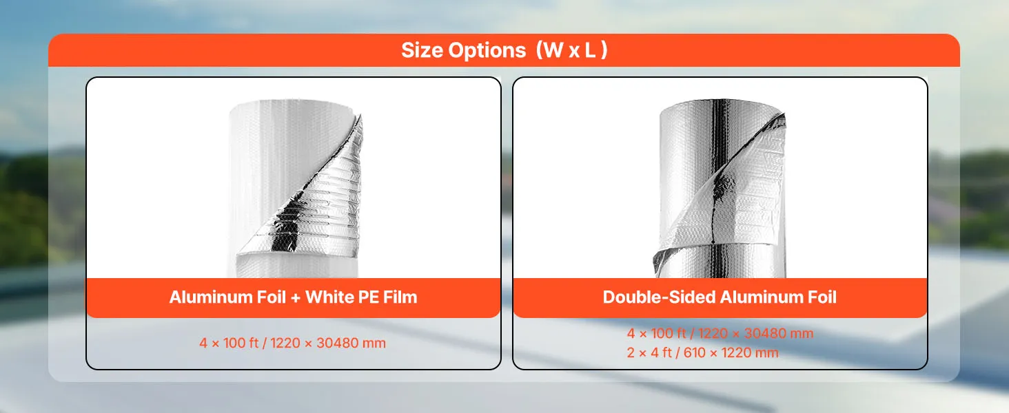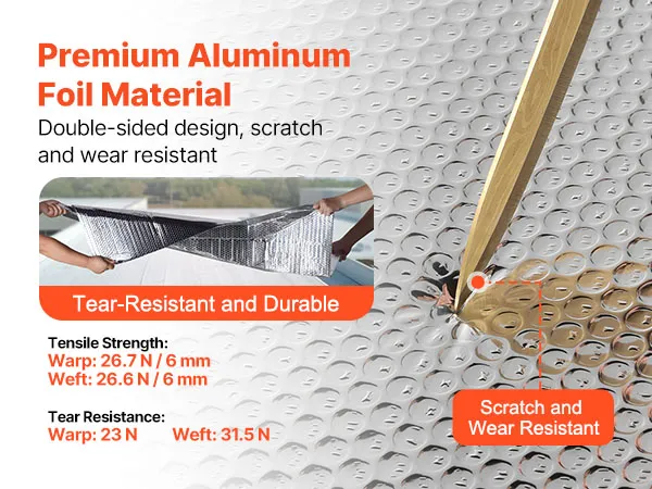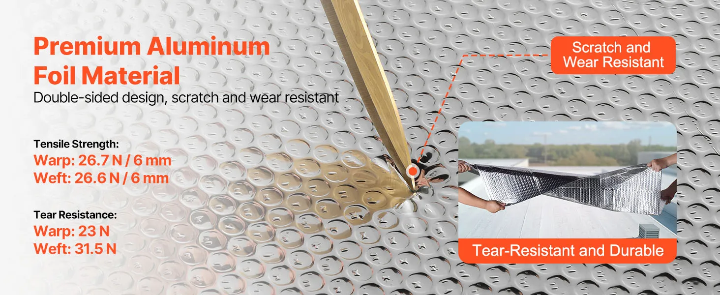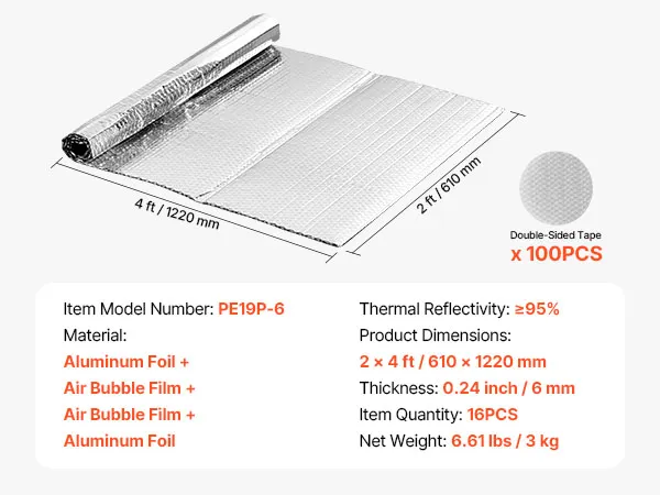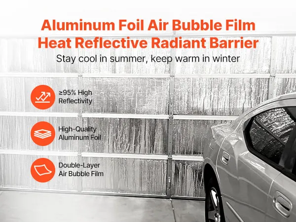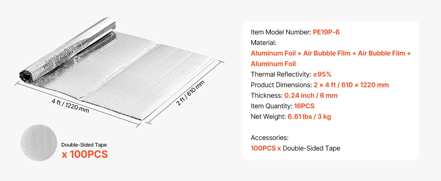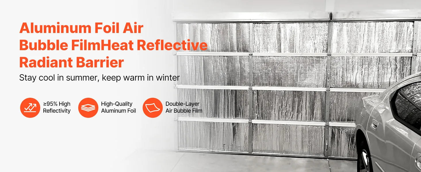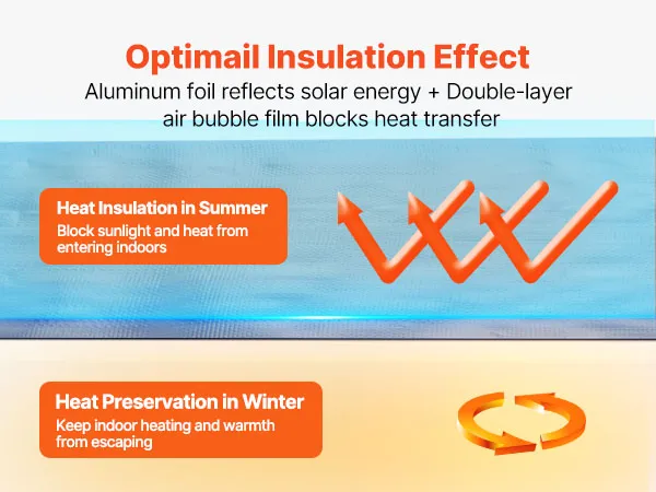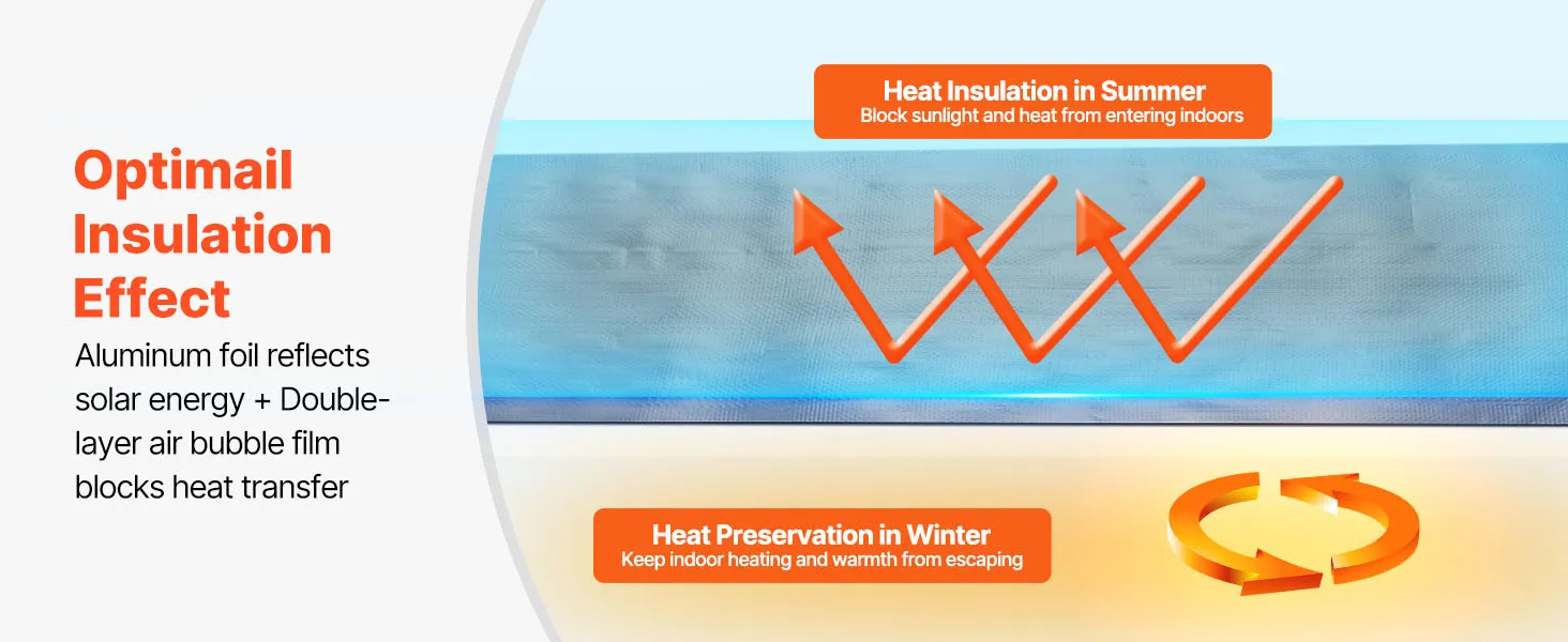 VEVOR 16-piece double reflective insulation sheets feature ≥95% high reflectivity, made from double-sided aluminum foil and double-layer air bubbles. It blocks sunlight in summer while preventing indoor heating loss in winter, maintaining a comfortable indoor temperature.