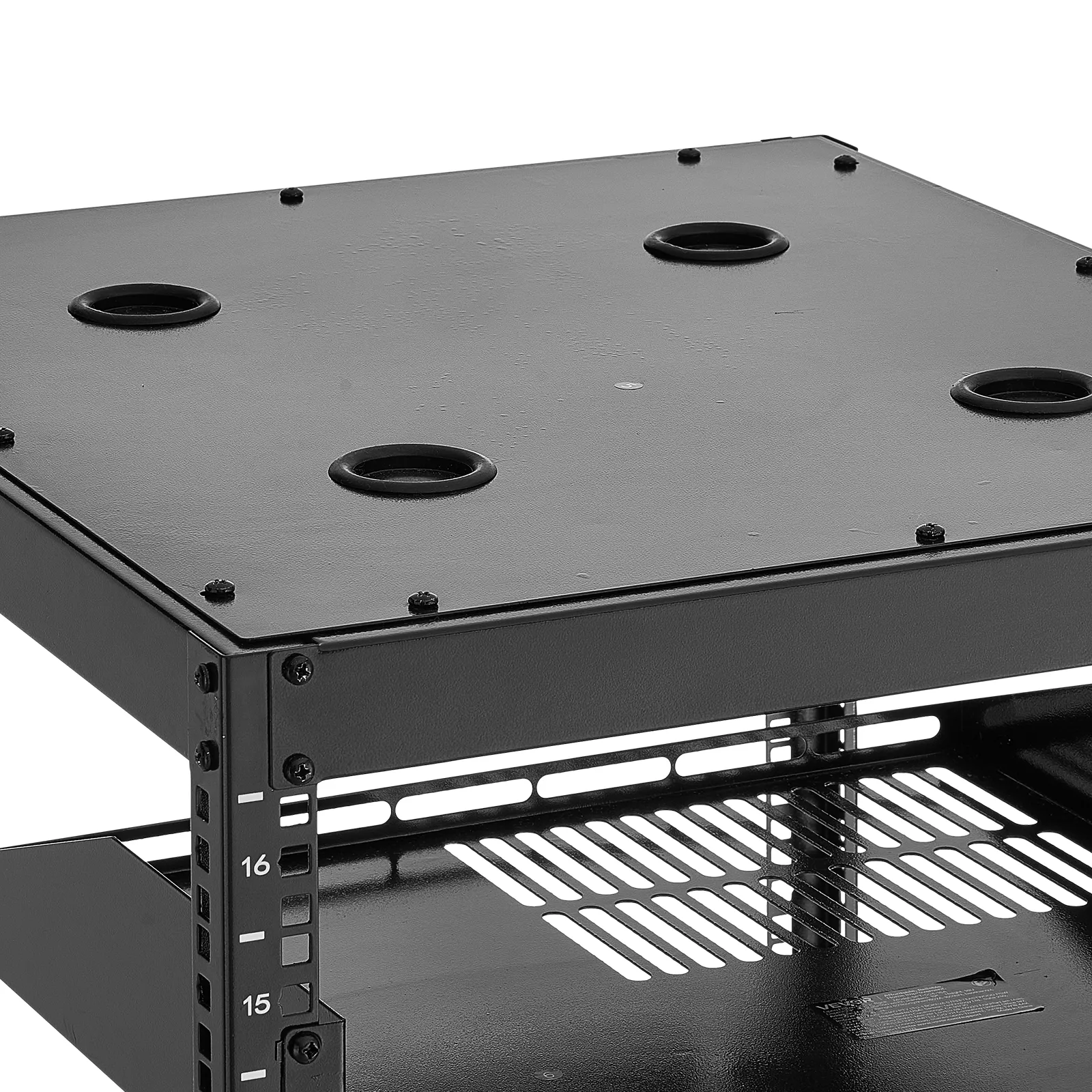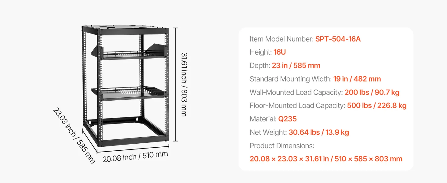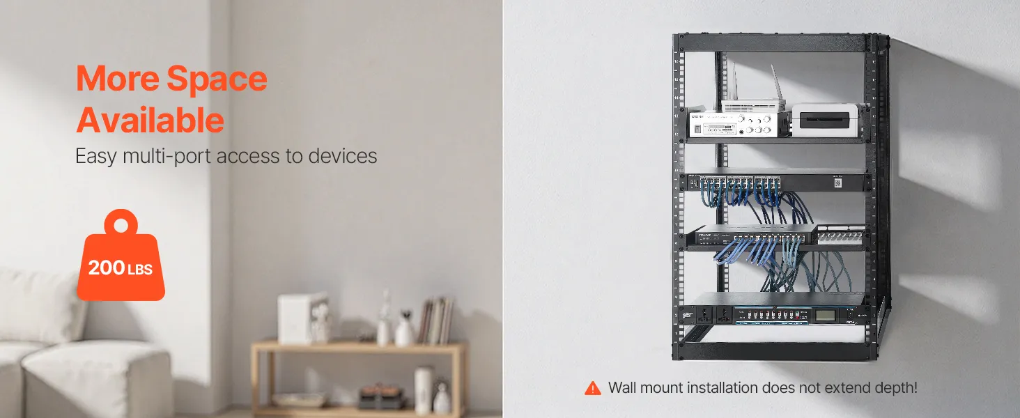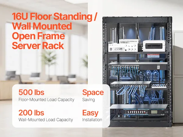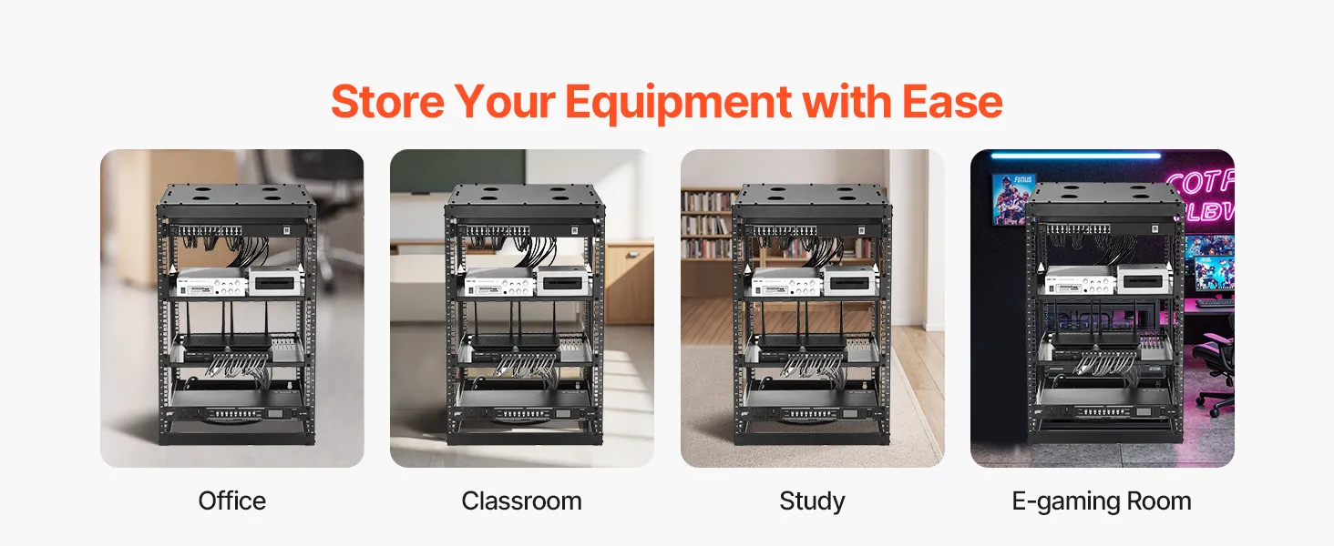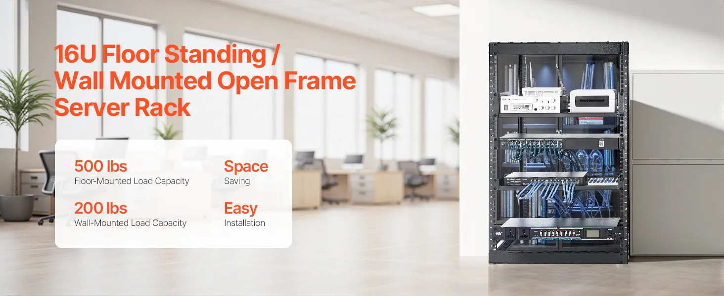 This open frame rack fits into tight spaces, ideal for homes, offices, and low-voltage rooms.