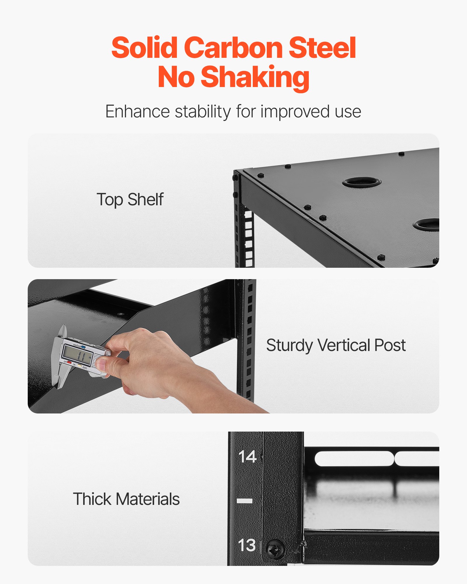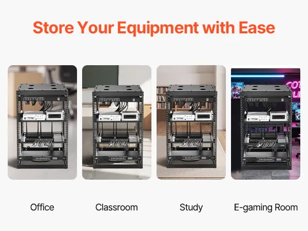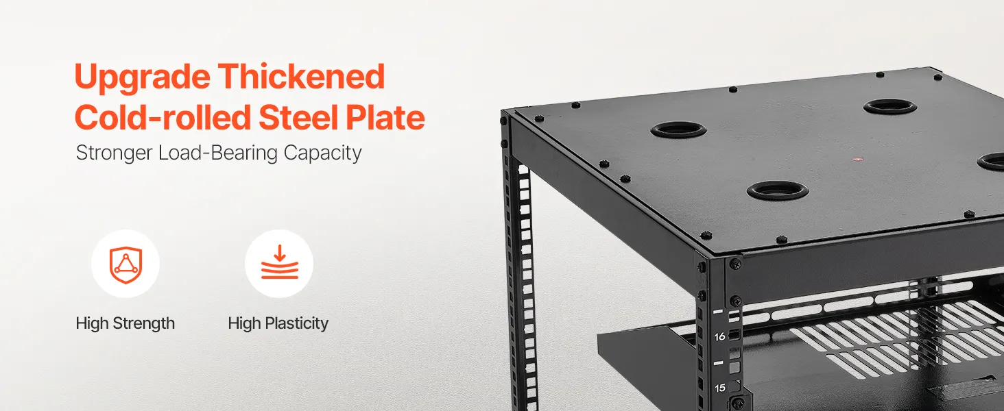 Features a sturdy structure, this open frame network rack resists shaking and deformation, reliable for long-term use.