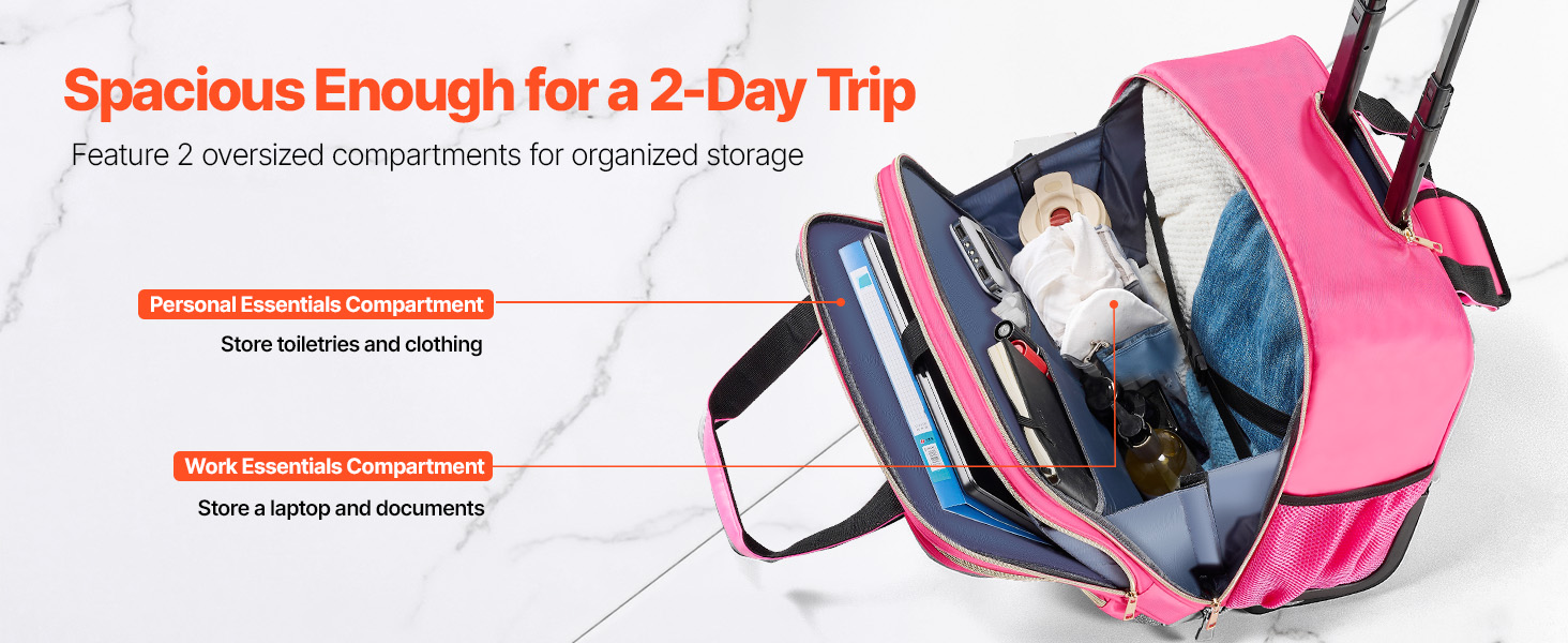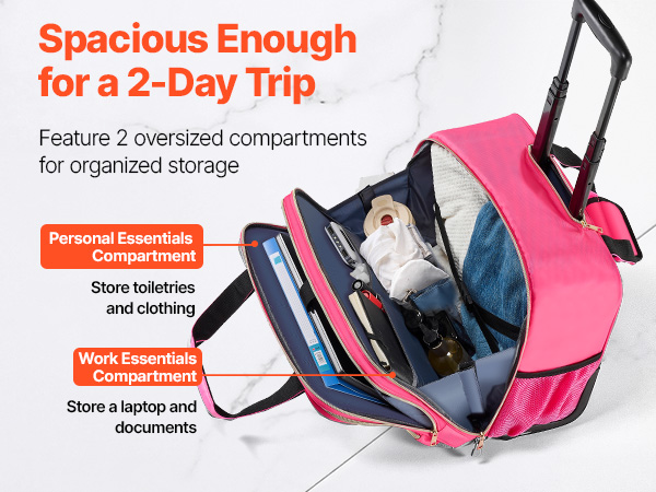 VEVOR 43,9 см сумка на колёсах для ноутбука – розовая водоотталкивающая дорожная сумка для женщин и мужчин, до 17,3'' ноутбука