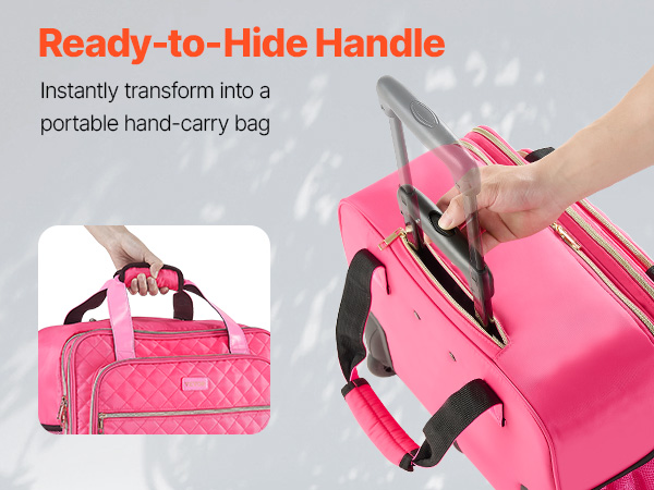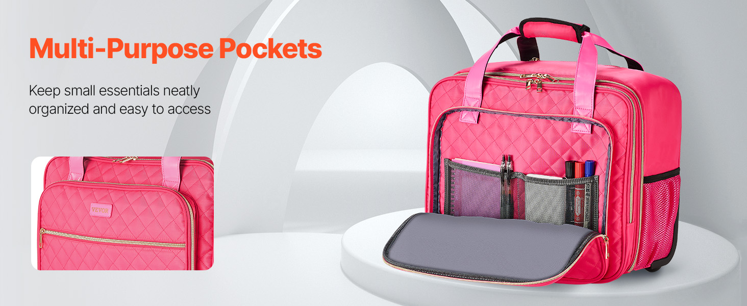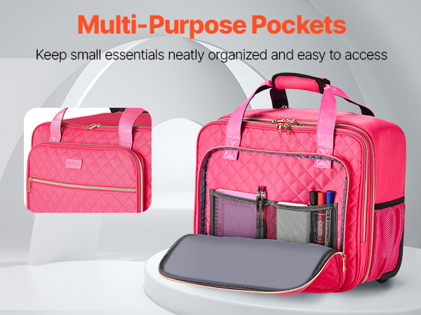 • Ваш стильный деловой спутник: В этой сумке для ноутбука на колесиках функциональность и элегантность сочетаются с мечтательной розовой водостойкой нейлоновой тканью и шикарным стеганым дизайном. Независимо от того, едете вы на работу или путешествуете, она выделит вас из толпы.