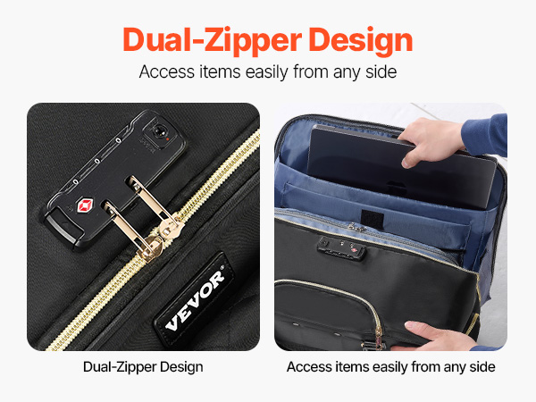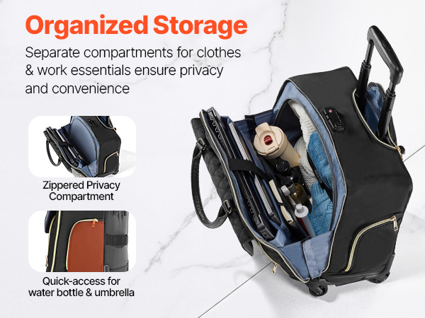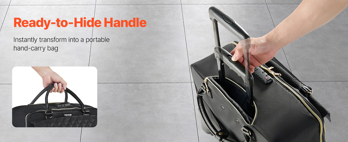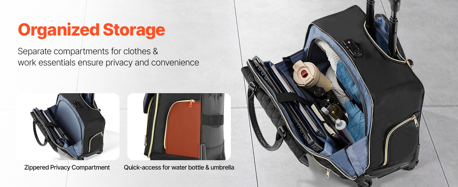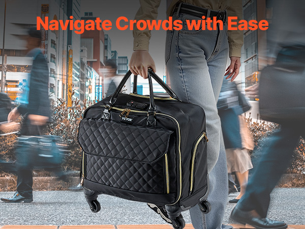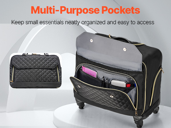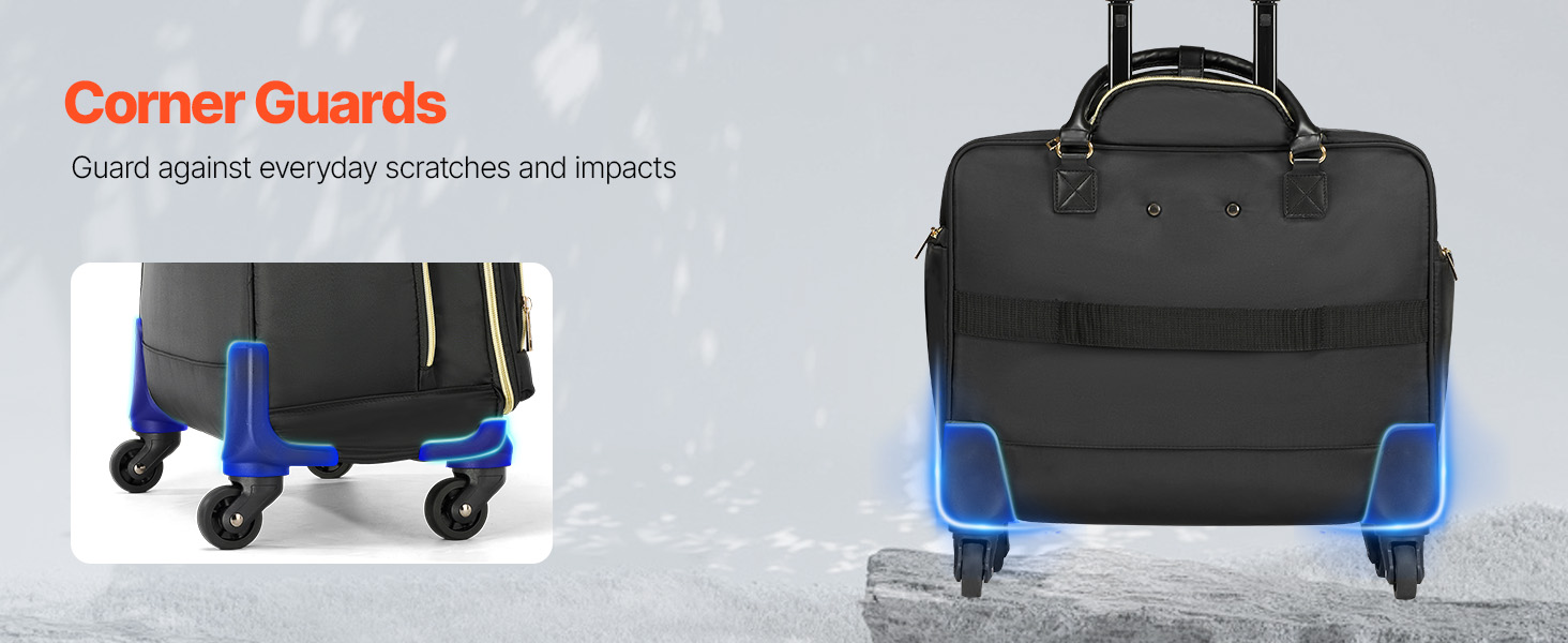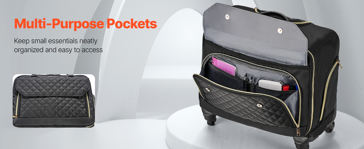 VEVOR Rolling Laptop Bag 17,3 inch / 43,9 cm Wheeled Computer Bag for Women Men Black Gold
