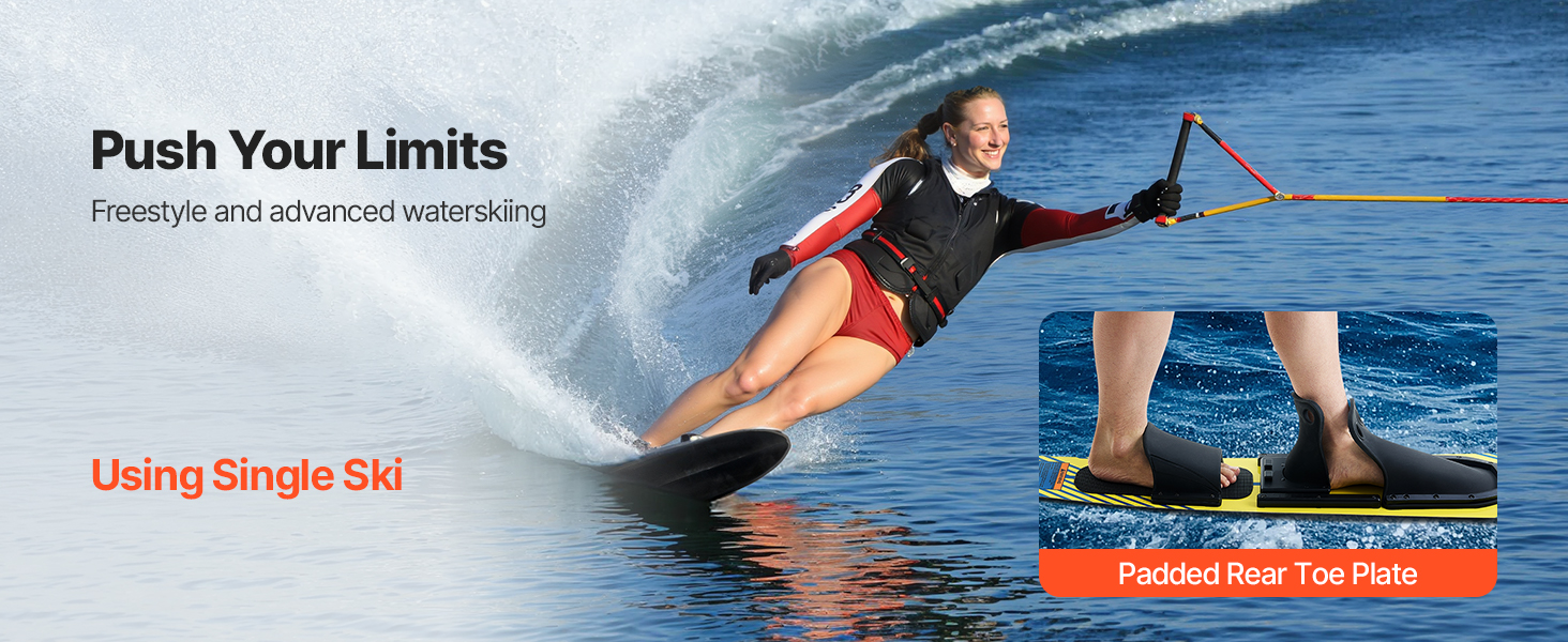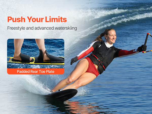 VEVOR Water Skis 170.2 cm / 67 inch, Water Ski with X-9 Adjustable Horseshoe Bindings & Padded Rear Toe Plate, High-gloss UV Coating Waterskis Combo for Adults Up to 136 kg