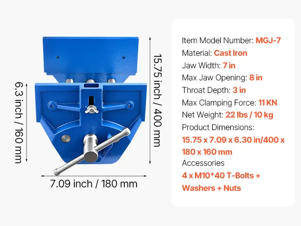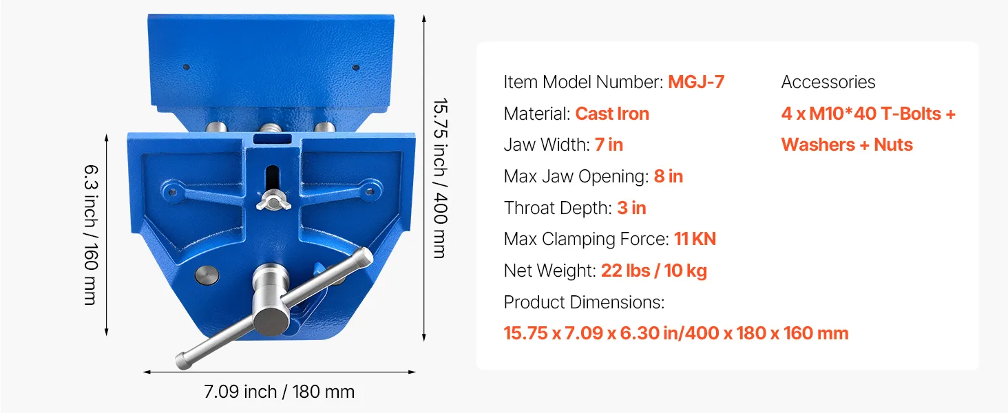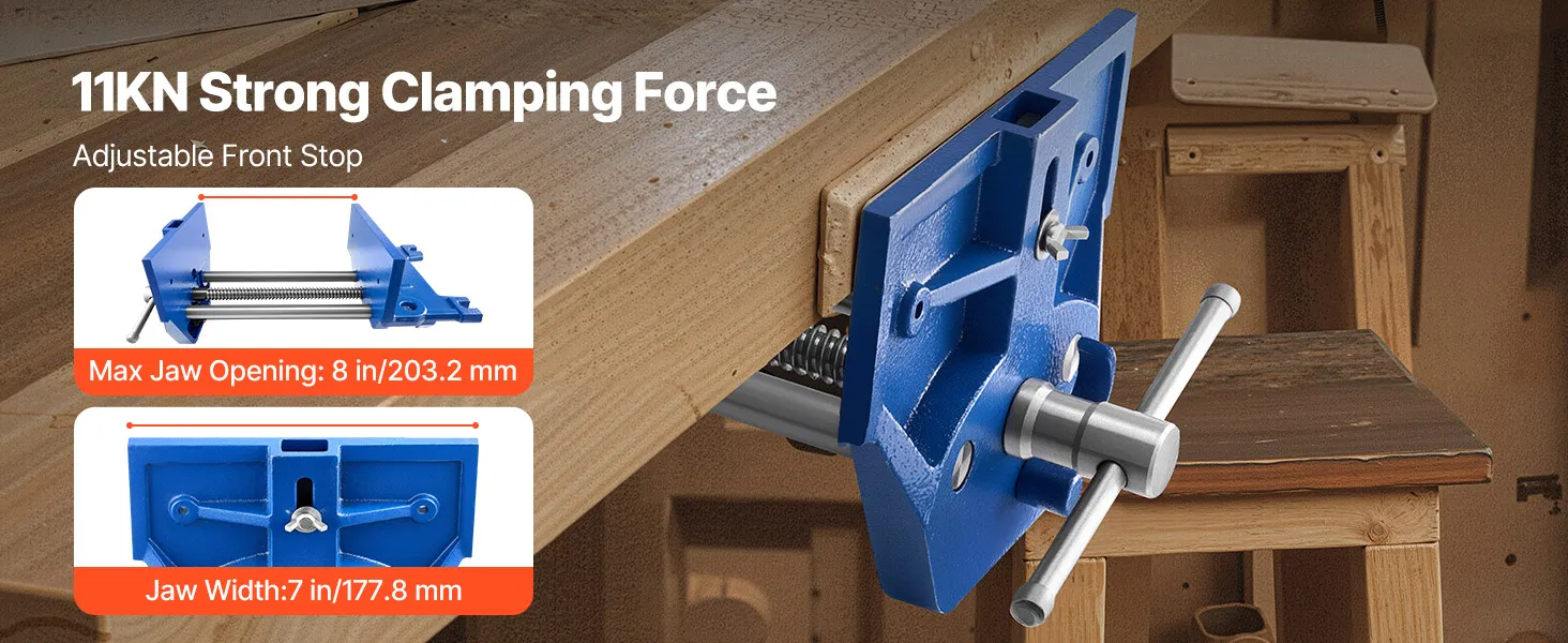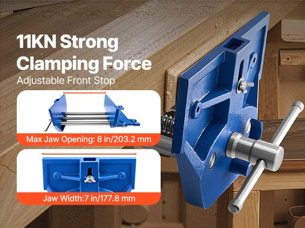 This wood vise delivers 11KN clamping force to keep your workpiece stable and secure. The adjustable stop block allows easy positioning, while the maximum jaw opening and width accommodate materials of different sizes.