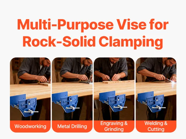 This work bench vise is suitable for woodworking, metal drilling, carving, grinding, welding, and cutting. A versatile tool for various workshop needs.
