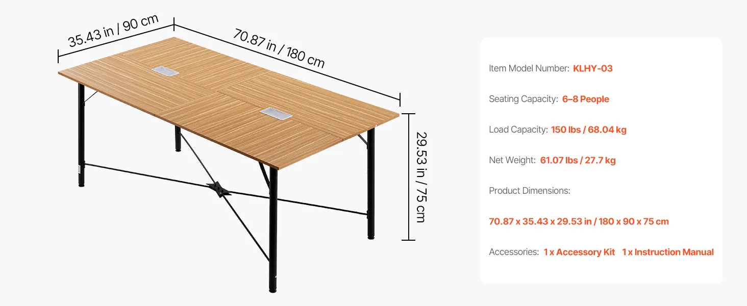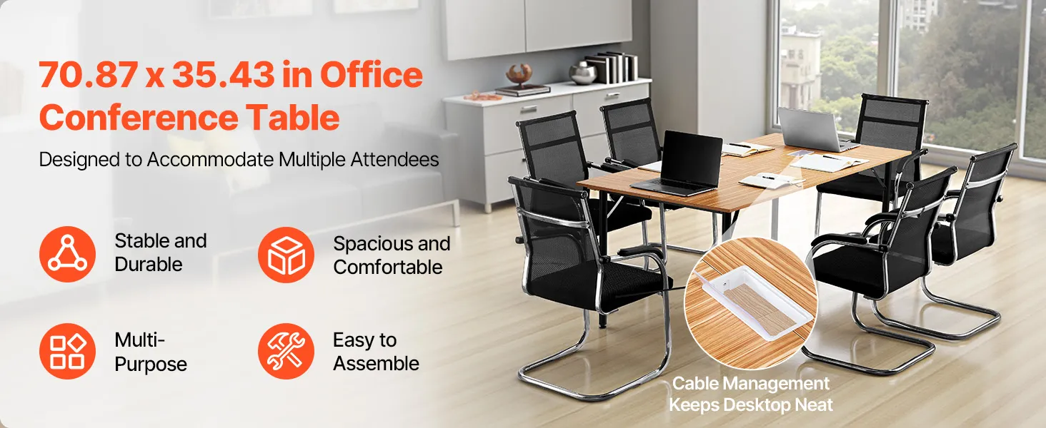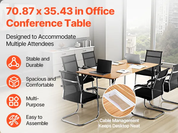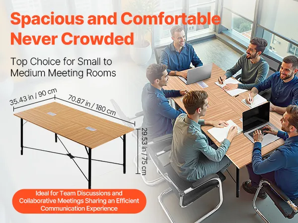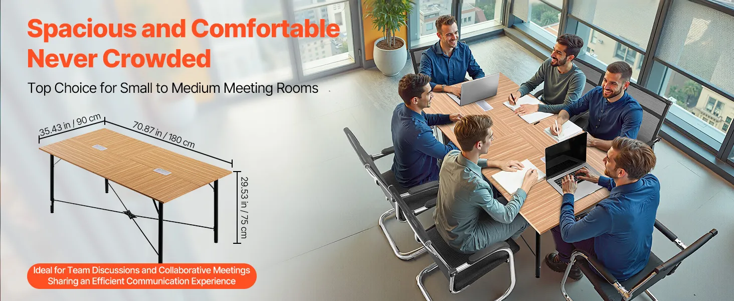 With a standard 6 ft tabletop, this conference room table comfortably accommodates up to 6-8 person. It creates a roomy environment for small or medium-sized meetings, catering team discussions, training, and video conference needs.