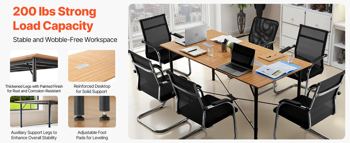 Built with a thickened tabletop and reinforced metal legs, this meeting table provides outstanding weight support. Auxiliary support legs and adjustable foot pads keep it stable and wobble-free, ensuring secure use in busy meetings.