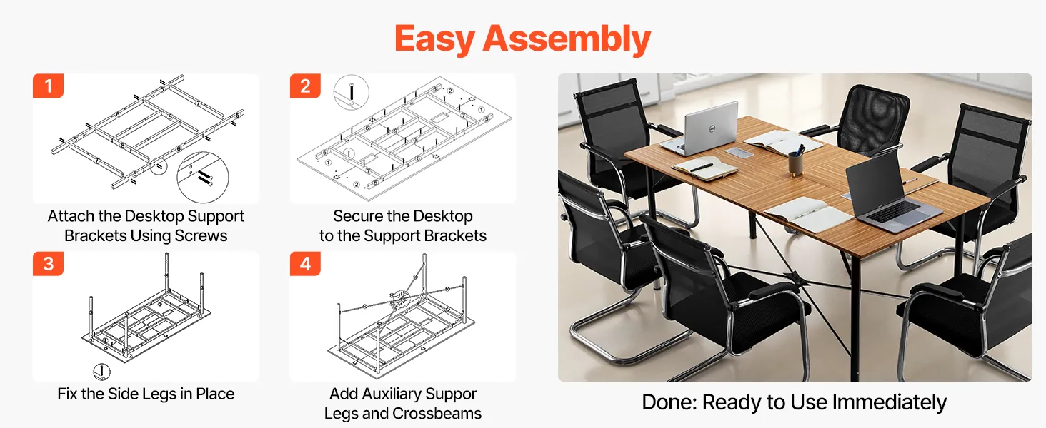 The office office conference table comes with all screws, a wrench, and a screwdriver, plus a detailed user manual for guidance. No extra tools are required—you can assemble it effortlessly and set it up right away, saving time and energy.