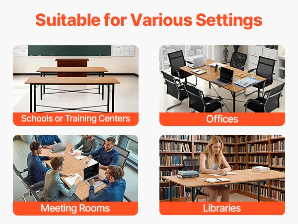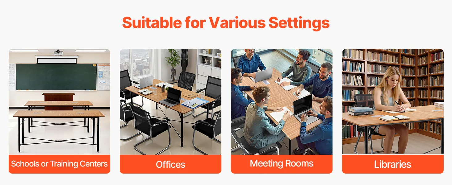 Ideal for conference rooms, training sessions, study areas, offices, or libraries. This office meeting table features a warm brown wood grain finish that blends seamlessly into any environment, combining practicality with a stylish appearance.