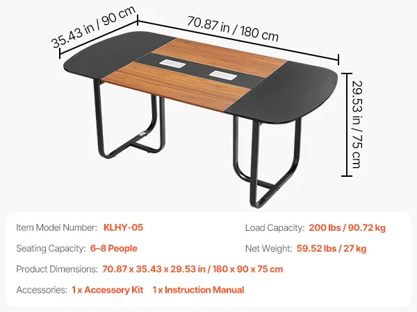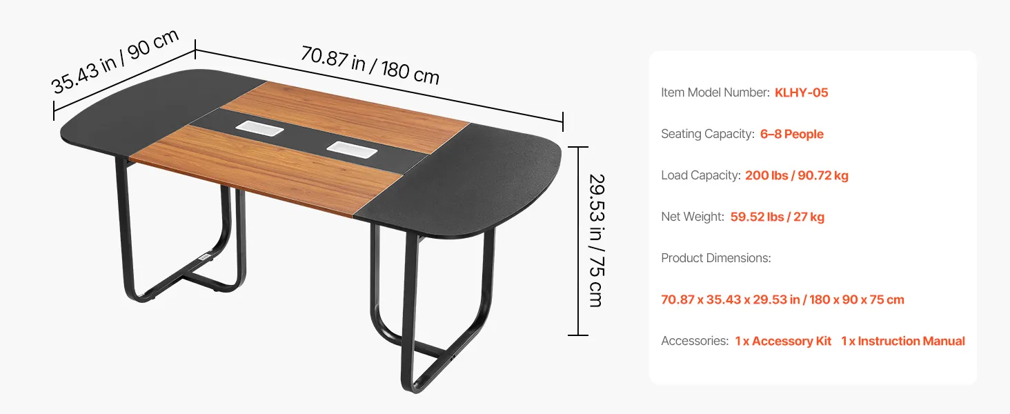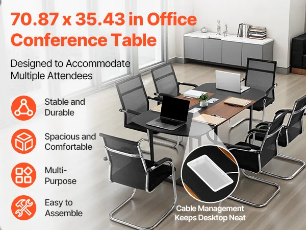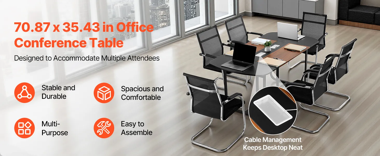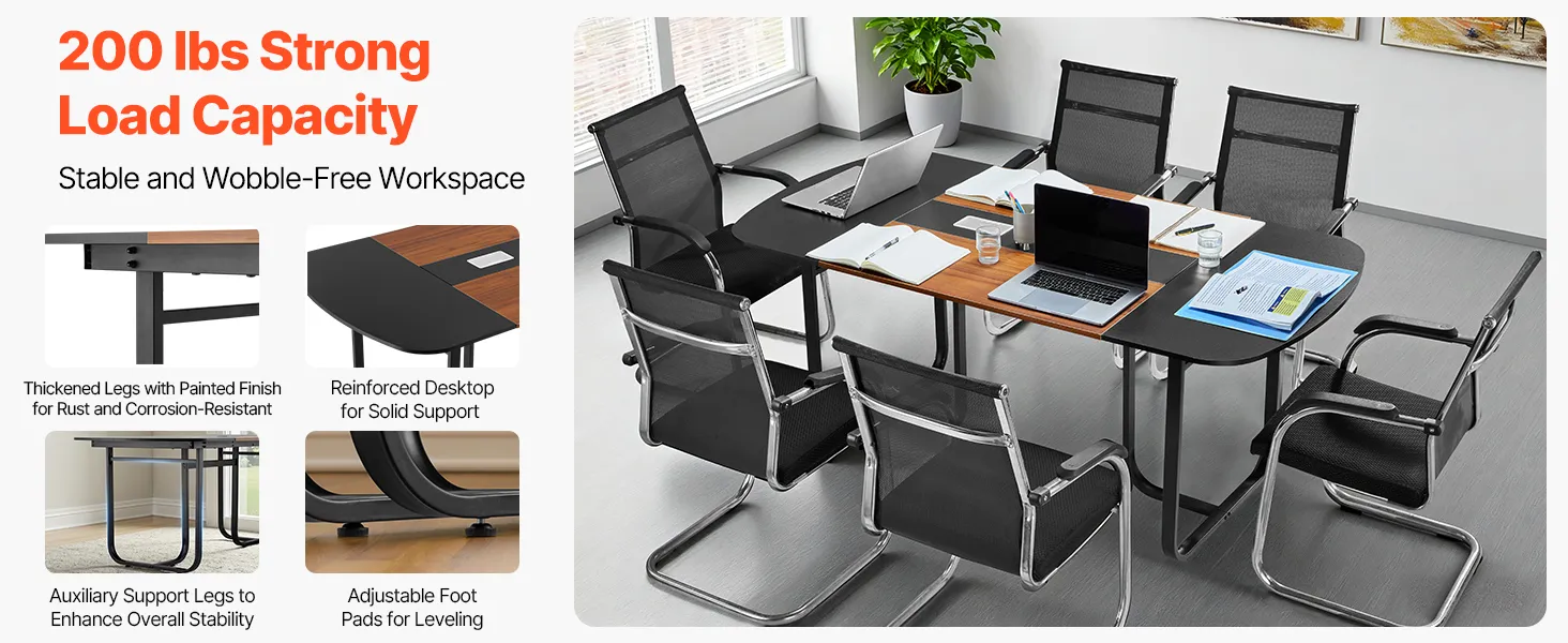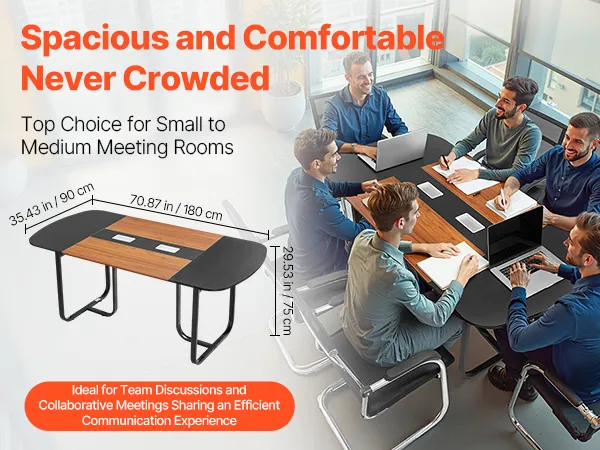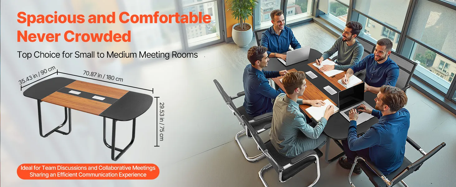 With a standard 6 ft tabletop, this conference room table comfortably accommodates up to 6-8 person. It creates a roomy environment for small or medium-sized meetings, catering team discussions, training, and video conference needs.