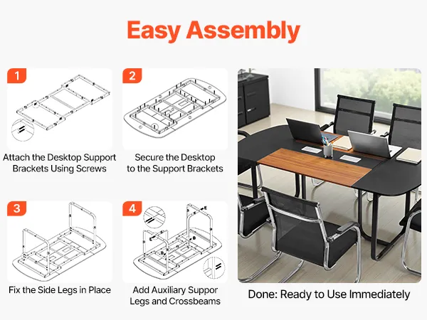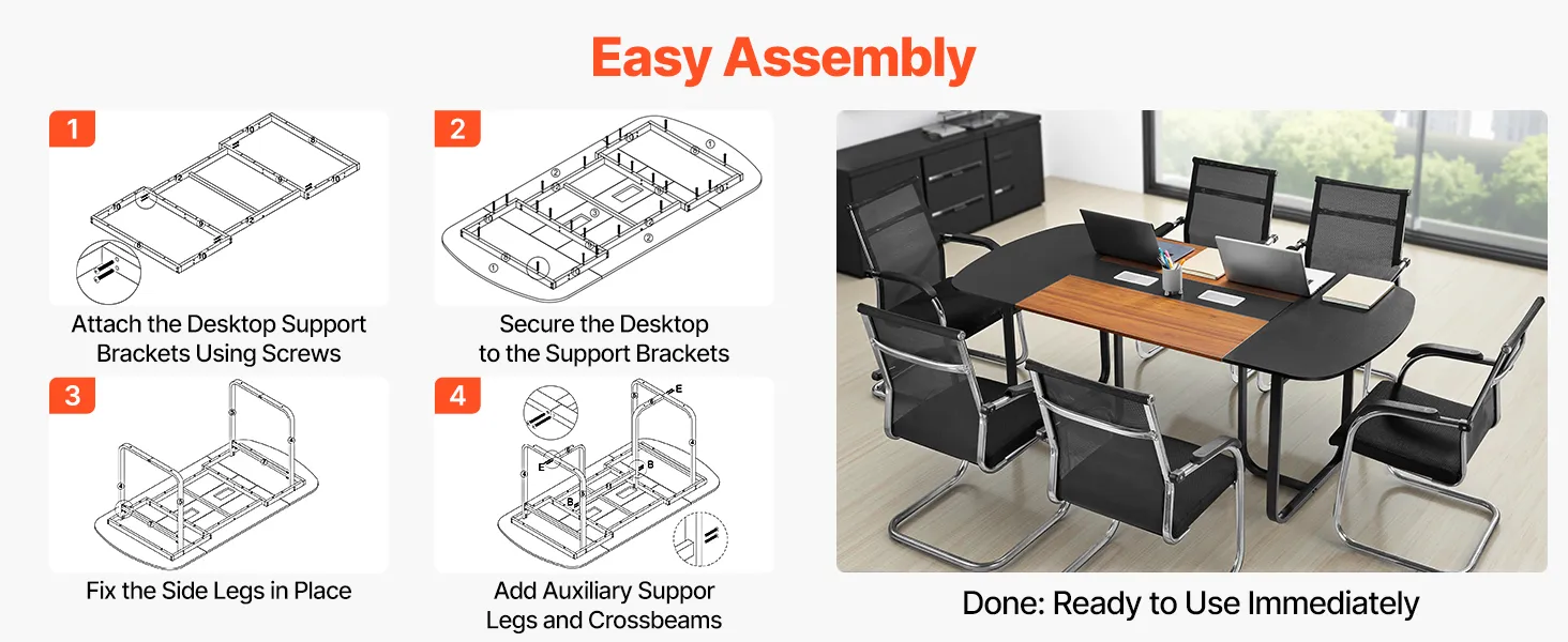 The office office conference table comes with all screws, a wrench, and a screwdriver, plus a detailed user manual for guidance. No extra tools are required—you can assemble it effortlessly and set it up right away, saving time and energy.