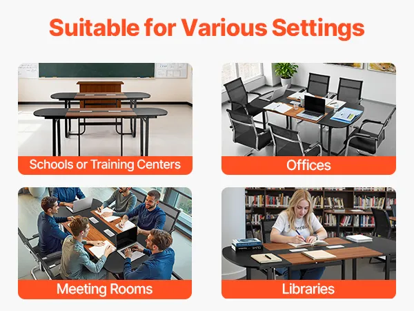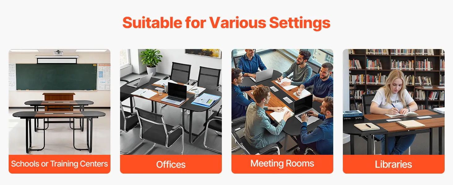 Ideal for conference rooms, training sessions, study areas, offices, or libraries. This office meeting table features a warm brown wood grain finish that blends seamlessly into any environment, combining practicality with a stylish appearance.