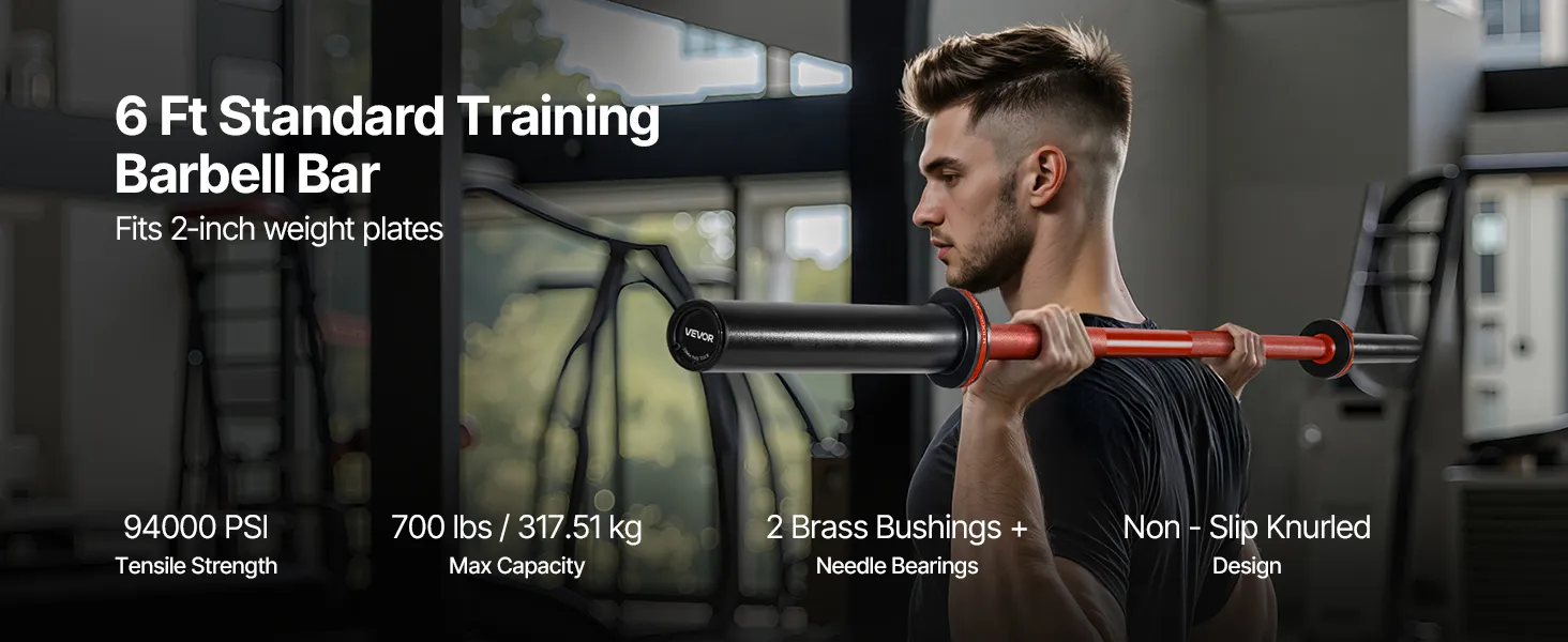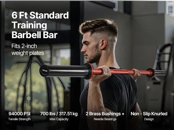 VEVOR 180cm Barbell Bar, Fit 2-Inch Weight Plates, Barbell Bar with Knurled Grip for Strength Training, Weightlifting, Squat, Deadlift, Bench Press, Curl, Overhead Press, 700lbs/317kg Capacity