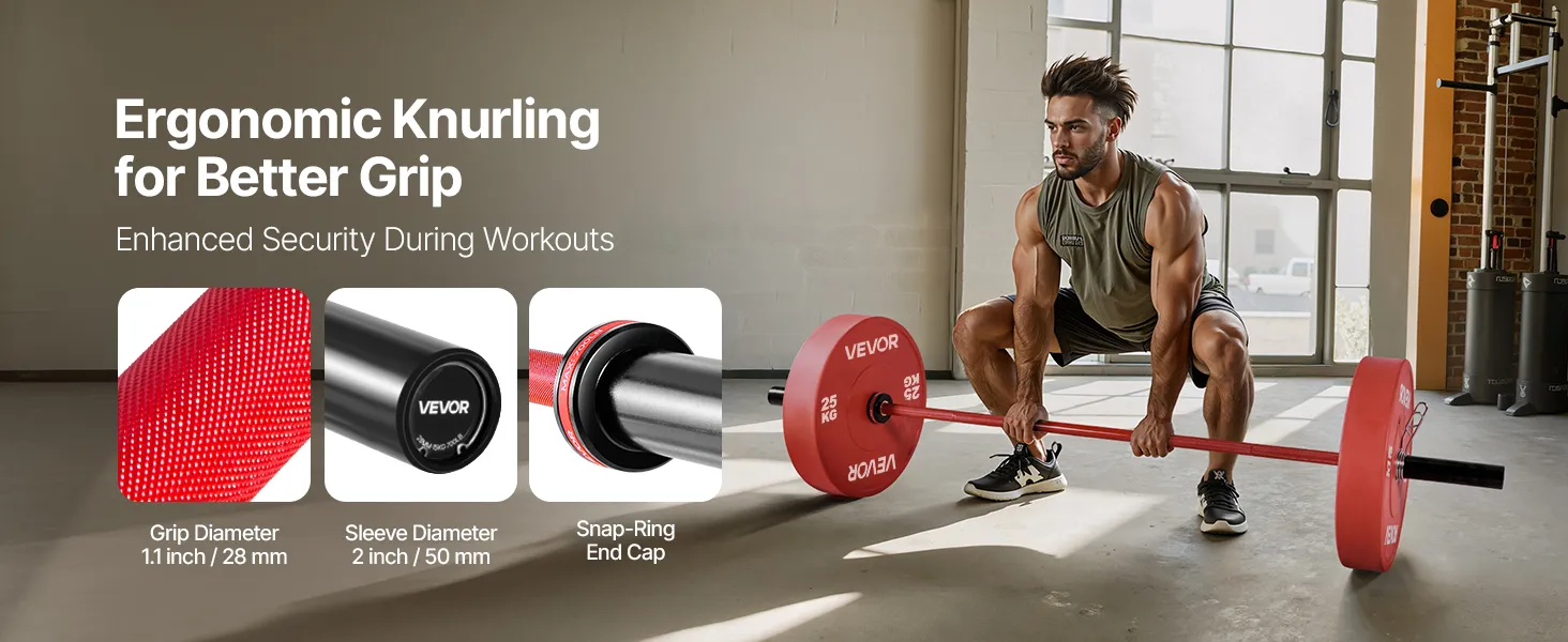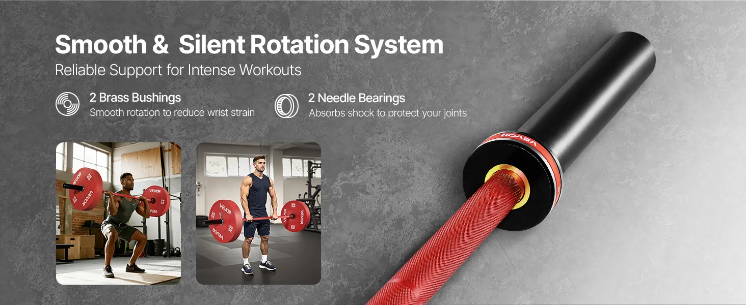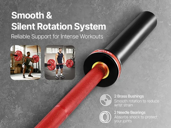 The strength training bar is equipped with 2 brass bushings and 2 needle bearings for smooth, quiet rotation. This reduces wrist and forearm strain, protects joints, and delivers consistent performance in bench press, rows, squats, and other heavy lifts.