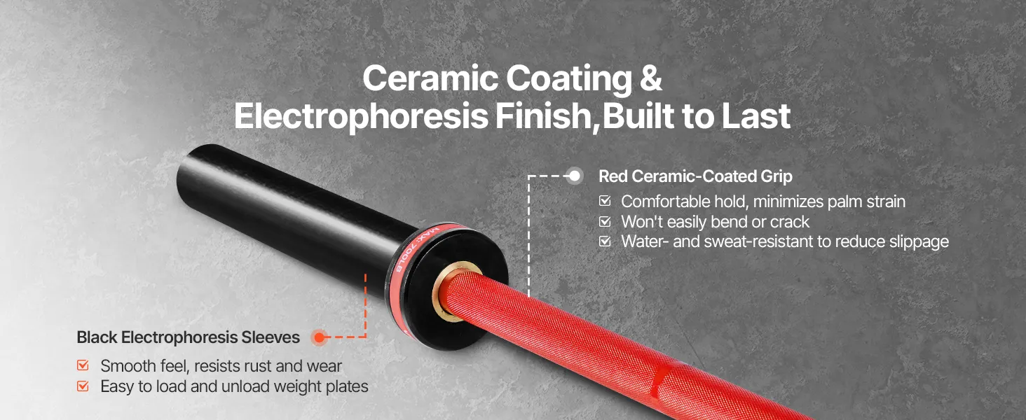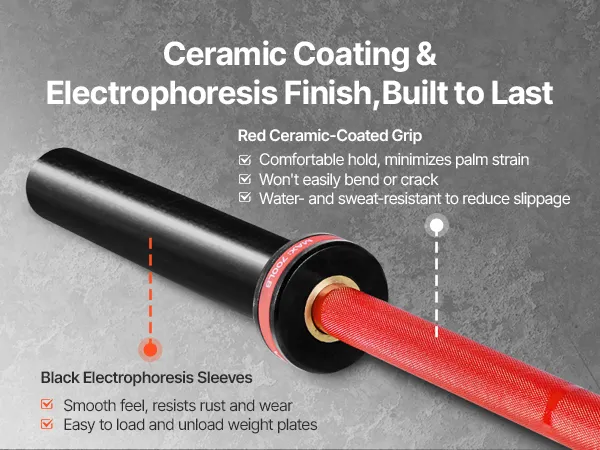 The black electroplated sleeves allow easy, quiet plate loading, while the red ceramic-coated handle provides a comfortable, sweat-resistant, and slip-resistant grip. Its rust- and wear-resistant finish enhances durability and extends service life.
