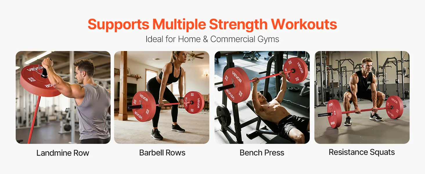 This barbell bar is suitable for a wide range of exercises, including landmine rows, barbell rows, bench presses, and resistance squats. Whether for muscle building, shaping, or strength gains, it is ideal for home gyms and professional training.