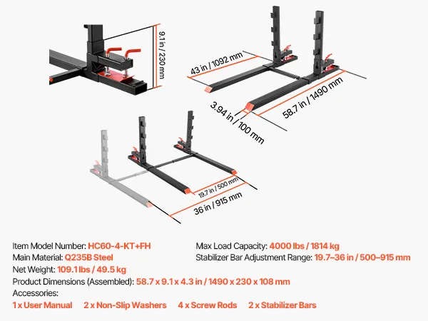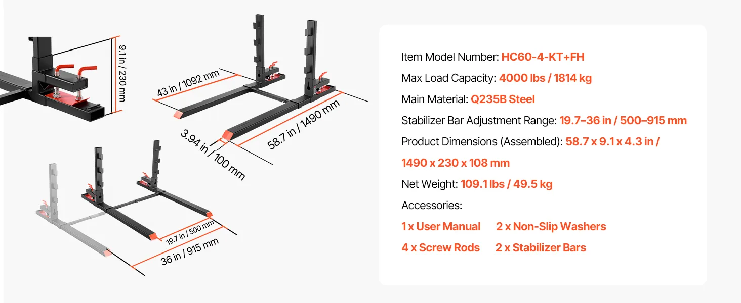 VEVOR Pallet Forks, 1814 kg Clamp on Pallet Forks, 149 cm Total Length Heavy-Duty Tractor Fork with Anti-Tilt Bar & Adjustable Stabilizer Bar, Fit for Loader Bucket Skid Steer Tractor, Black