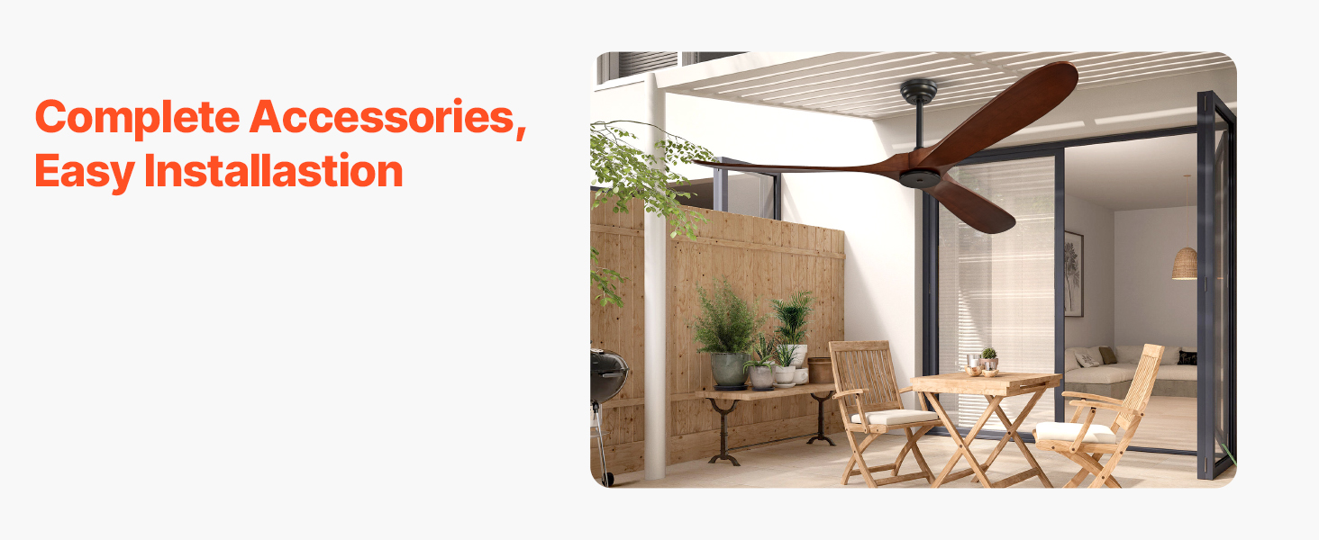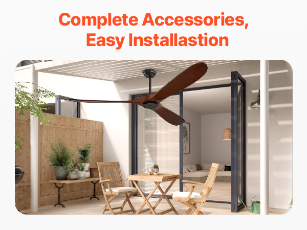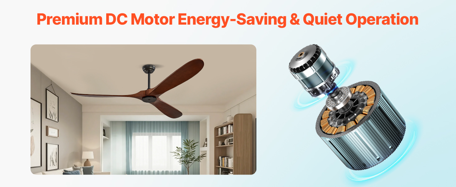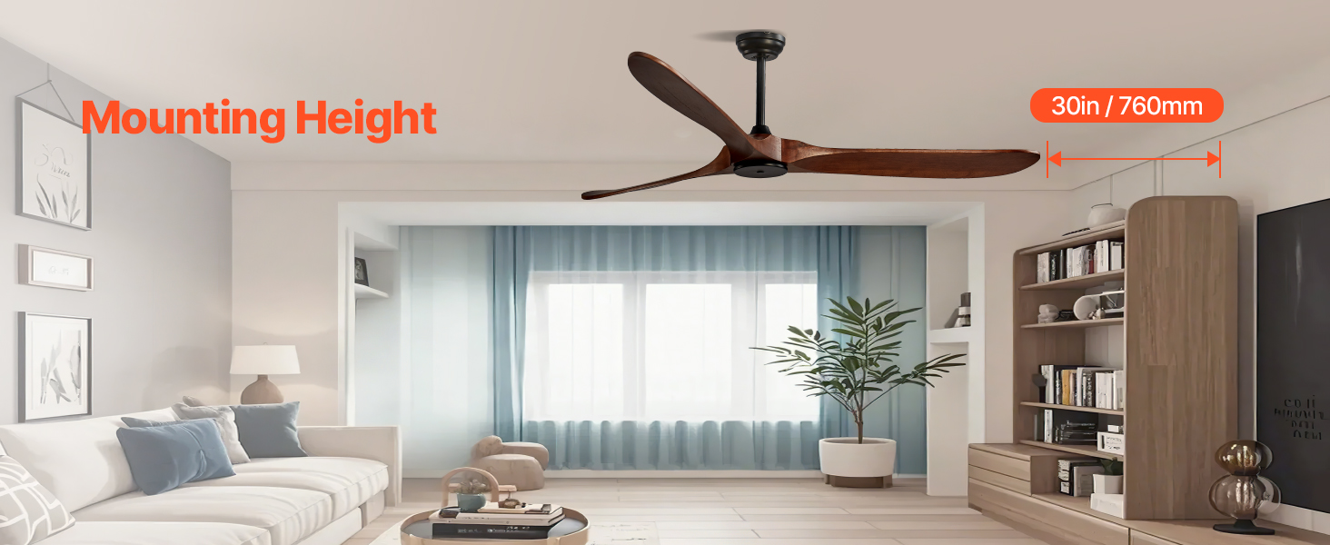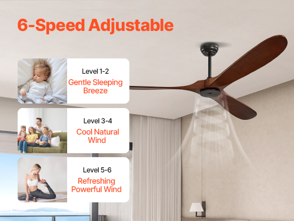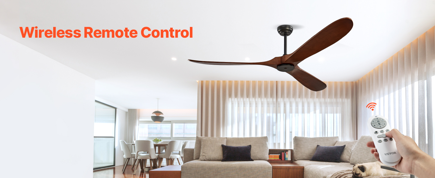 Потолочный вентилятор без подсветки: Универсальный вентилятор с лопастями из массива дерева, привлекательный и долговечный