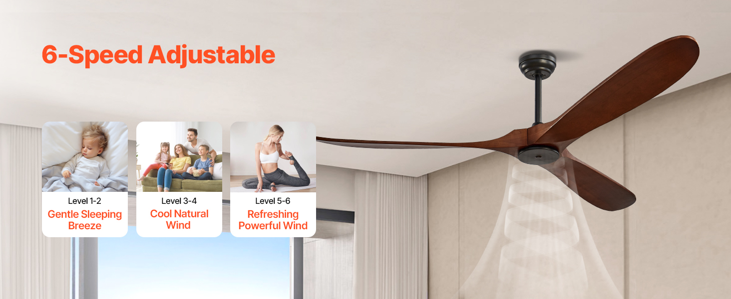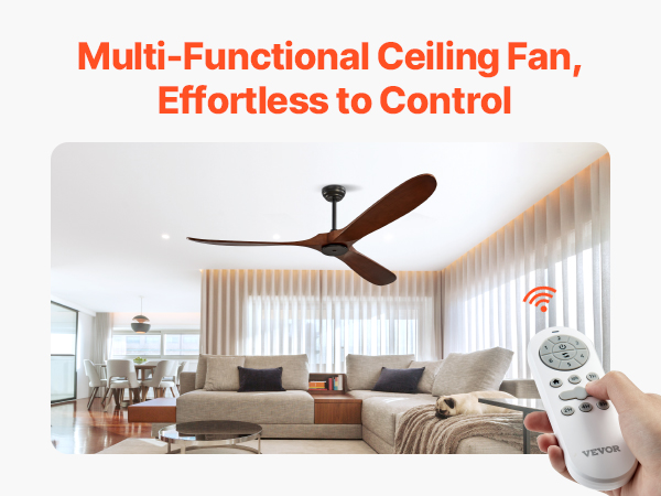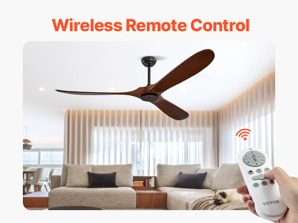 VEVOR 72 Inch Ceiling Fan without Light, 6-Speed Remote Control, 3-Wood-Blade, Reversible DC Motor, Modern Low Profile Flush Mount Exterior Fan for Bedroom, Living Room, Patio, Indoor/Outdoor, Walnut