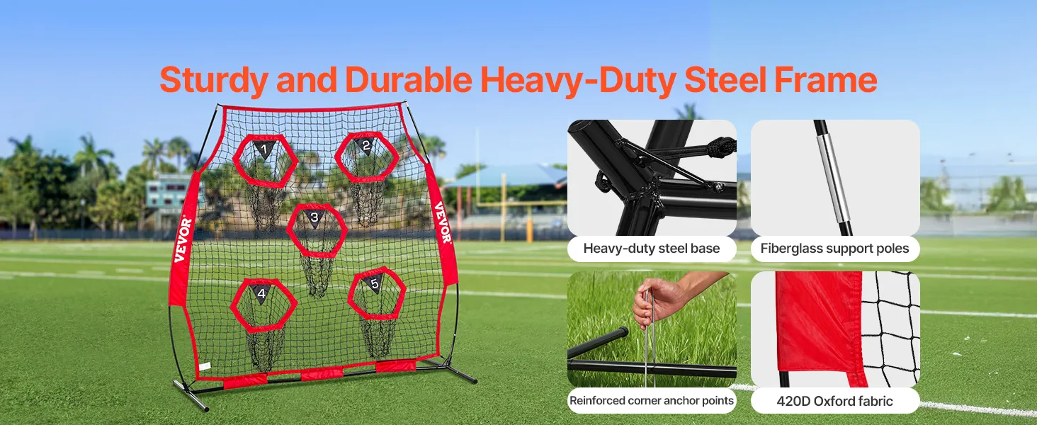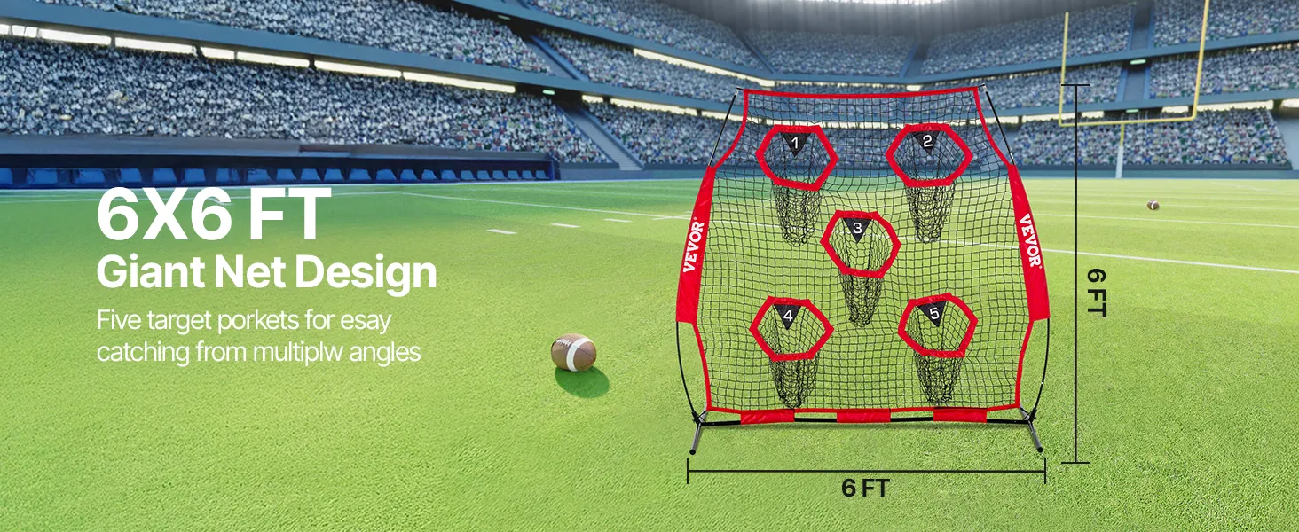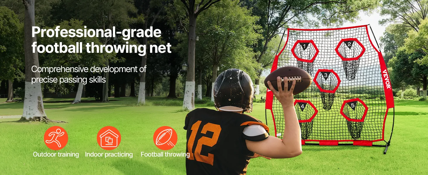 Featuring a high-density 1.75 inch/44.5mm mesh hole size design, this football throwing net ensures compatibility with passing drills.