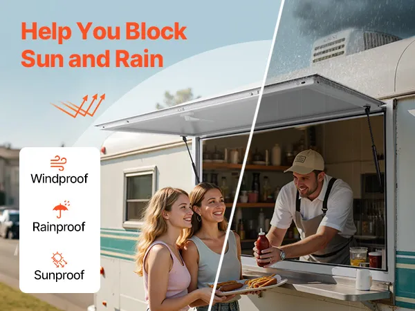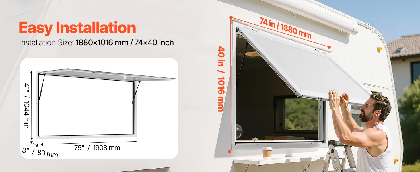 Q1: Are the window dimensions precise? Will it fit my food cart/counter?A1: Strict size control! The window frame installation size is 1880x1016 mm / 74x40 inch, suitable for standard food cart/counter openings. Please measure your installation space before purchasing.Q2: Is the aluminum composite panel prone to cracking or scratching?A2: Highly durable! The upgraded 2.5mm aluminum composite panel is sturdy and impact-resistant, outperforming ordinary materials and able to endure bumps, high heat, and oily environments.Q3: Can the hydraulic rods stably support an 85° opening angle?A3: Dual hydraulic rods provide strong support! Using 420 series hydraulic rods (150mm stroke), the window opens and closes smoothly and can stay suspended at any angle—ideal for frequent use scenarios.Q4: Are the locking points prone to rusting?A4: Galvanized anti-rust treatment! Locking points feature a zinc alloy coating and pass a 72-hour salt spray test, offering better rust resistance than ordinary locks for long-term outdoor use without worry.Q5: Does it include a screen? How do I clean it?A5: Designed for easy maintenance! This version does not include a screen. The window surface can be cleaned with a damp cloth. The frame has a white powder-coated finish that resists oil stains.