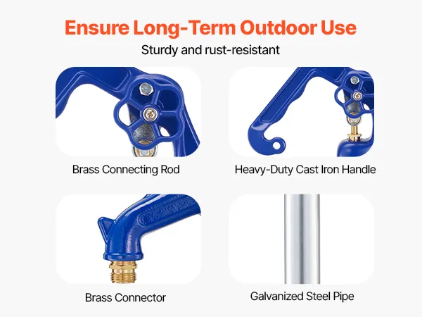 Crafted with heavy-duty cast iron handle, brass connectors, and galvanized steel pipe. our freezeless water faucet hydrant is durable, corrosion-resistant and crack resistant, reliable for long-term outdoor use in all weather conditions.
