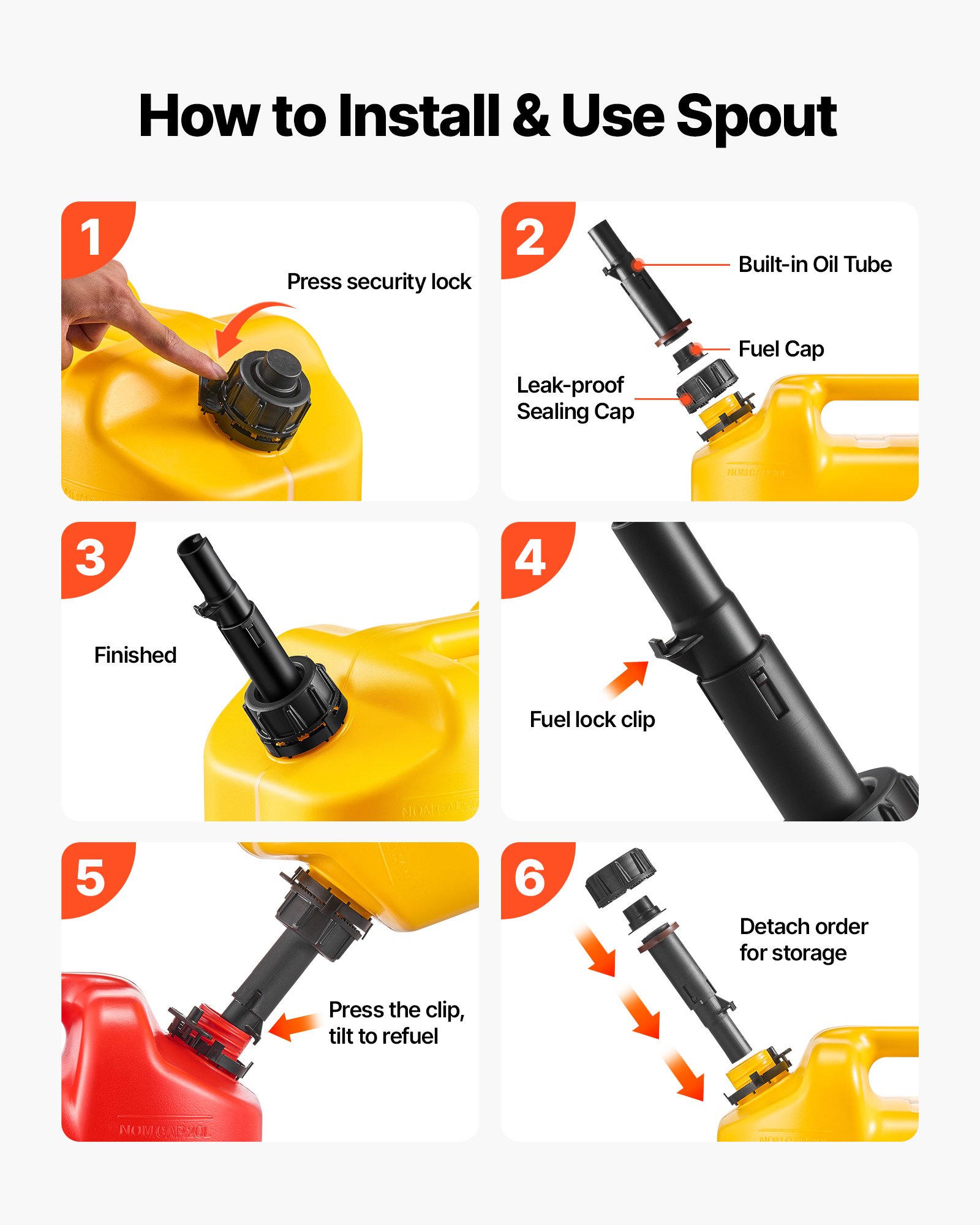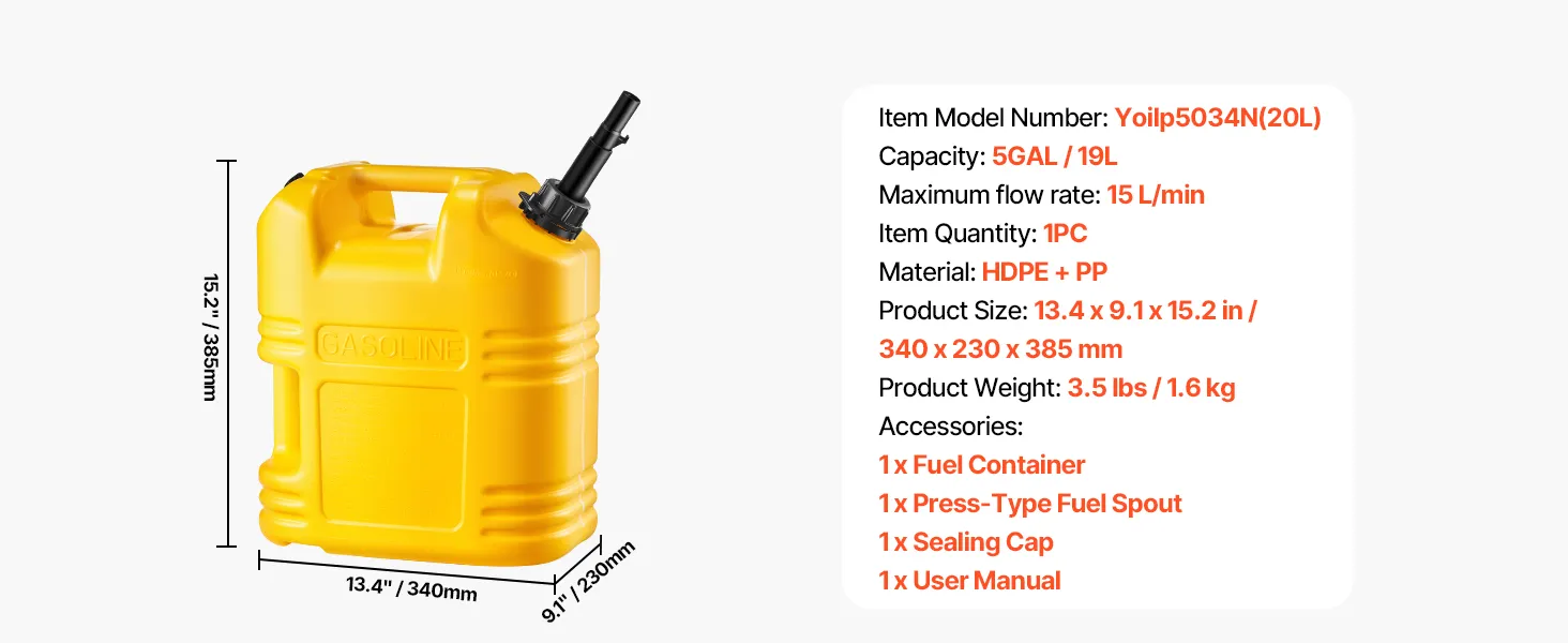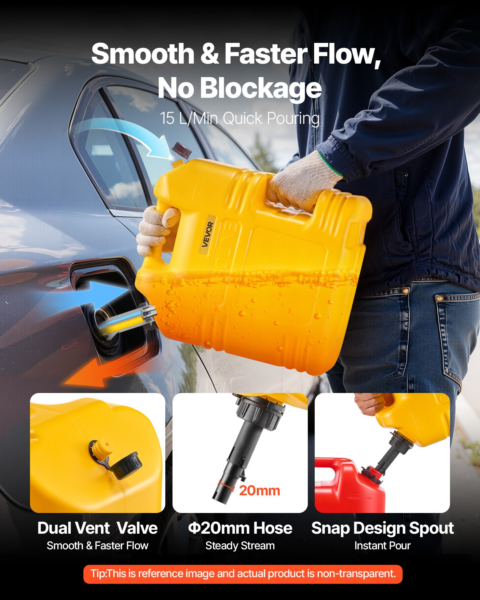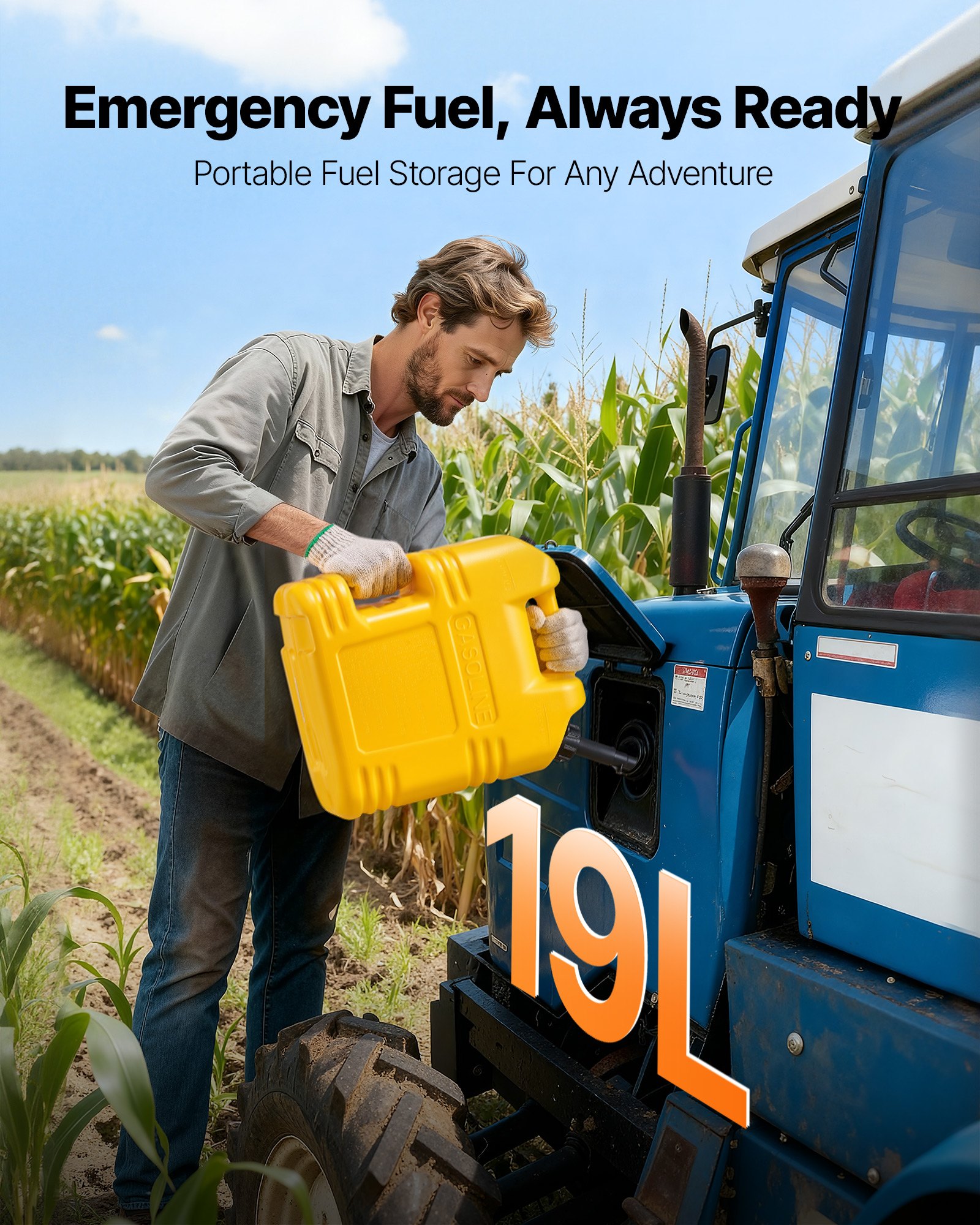VEVOR Fuel Container, 19 L, Gas Tank with Spout & Clear Scale, 15 L/min Max Flow Rate, Secure & Leak-proof, Portable Flat Fluid Container for Most Cars Motorcycle SUV ATV UTV, Yellow, 1 Pack
