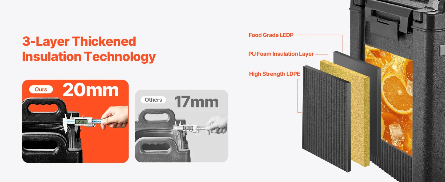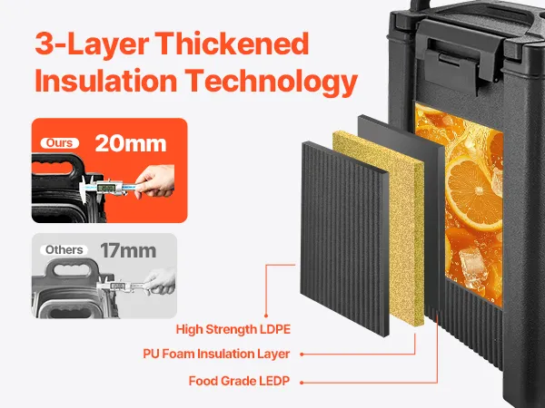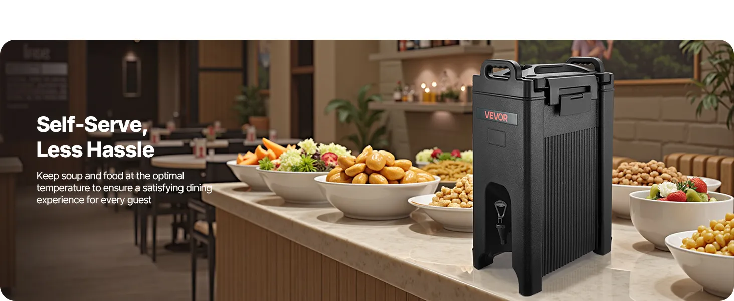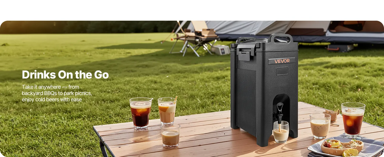 Этот изолированный диспенсер для напитков обладает большой емкостью для непрерывной подачи горячих или холодных напитков, удовлетворяя высокие потребности кофеен, ресторанов, фуршетов, мероприятий на открытом воздухе и многого другого.