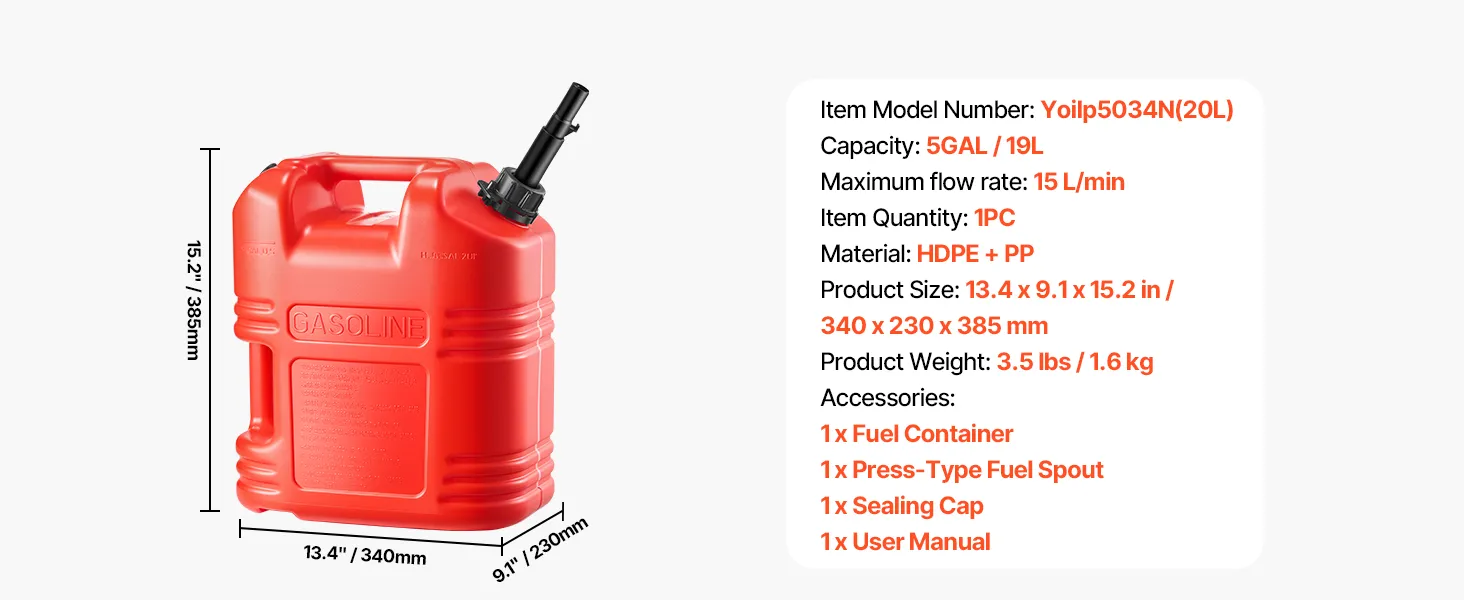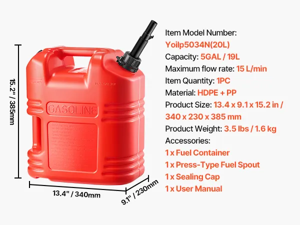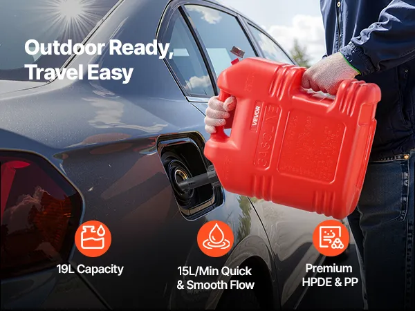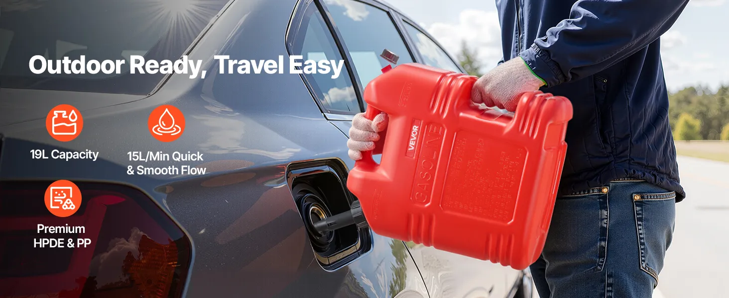 • Compact Size: Need backup fuel without losing space? This 19L gas can (13.4 x 9.1 x 15.2 inches) fits right in your trunk. It’s lightweight yet reliable for trips, camping, or outdoor work