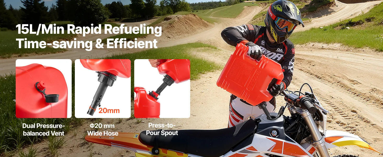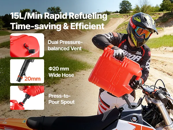 • Smooth 15 L/min Fast Flow: Done with “glug-glug” refills? This fuel can pours up to 15 L/min with a 20 mm hose and dual vent valve for a steady, smooth flow every time