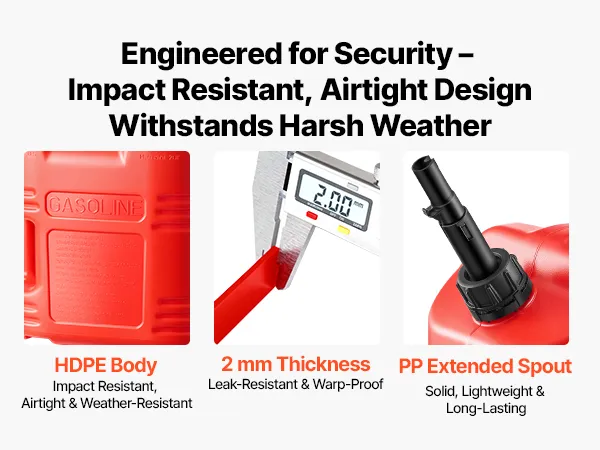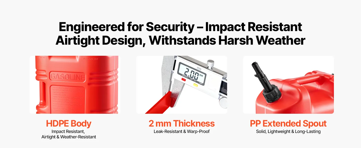 • Long-lasting Design: Want durability? This HDPE fuel tank has 2 mm walls that withstand drops, bumps, and sun. The PP extension spout makes every refill easy and clean