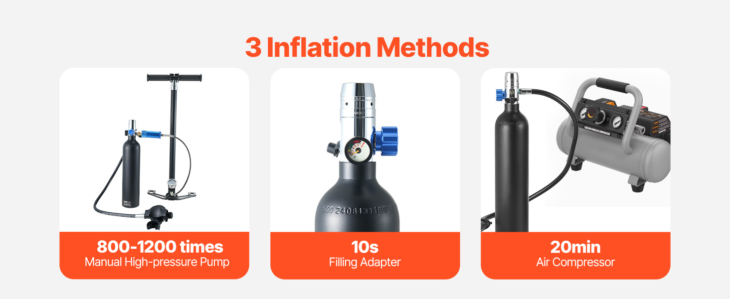 VEVOR 1L Scuba Tank 98.43 ft Diving Depth Refillable Snorkel Air Tank with Pump