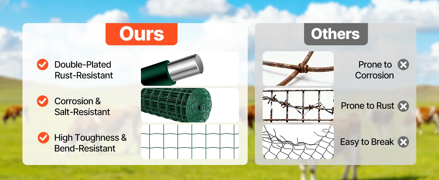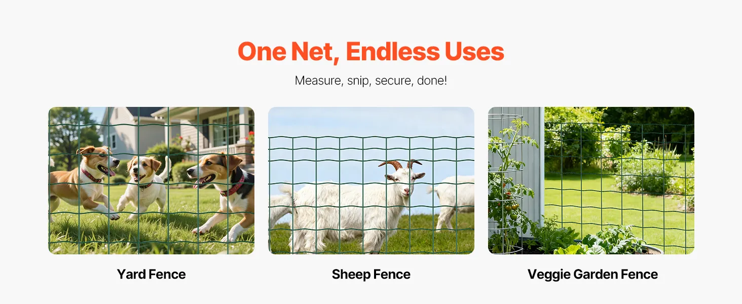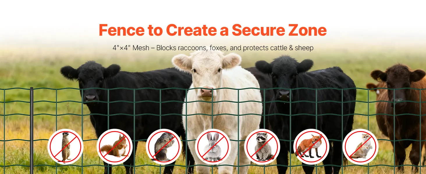 This farm fence can be used as animal cages, garden enclosures, or even as decorative or artistic installations. Create a secure zone in one rolling step. It is ideal for livestock, gardening, or general outdoor security