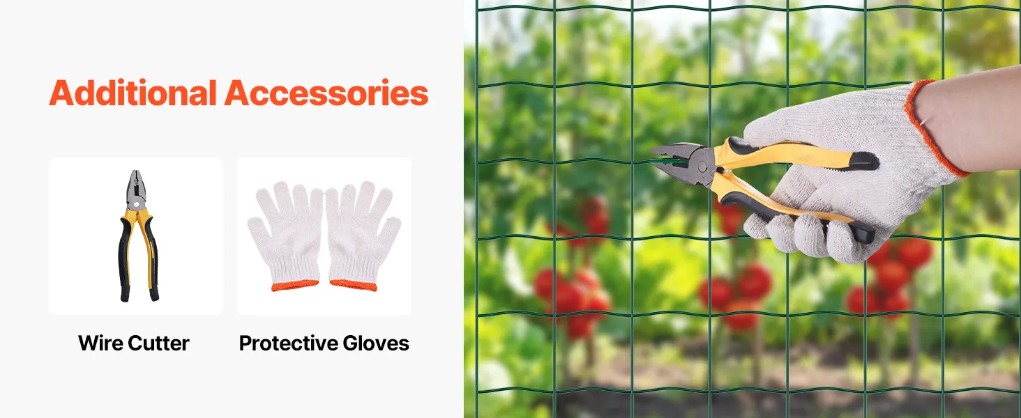 Comes with 1 cutter and 1 pair of gloves, letting you trim walls, fences, or cages as you like.
