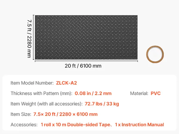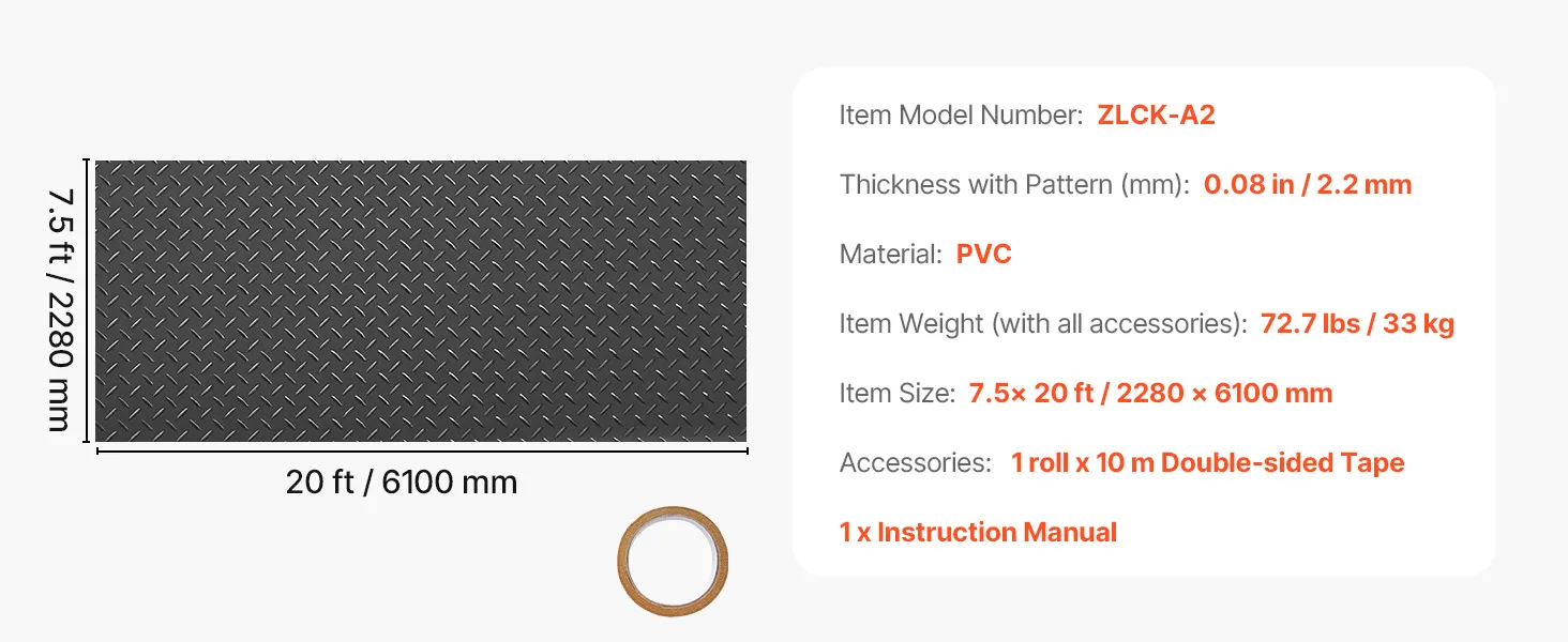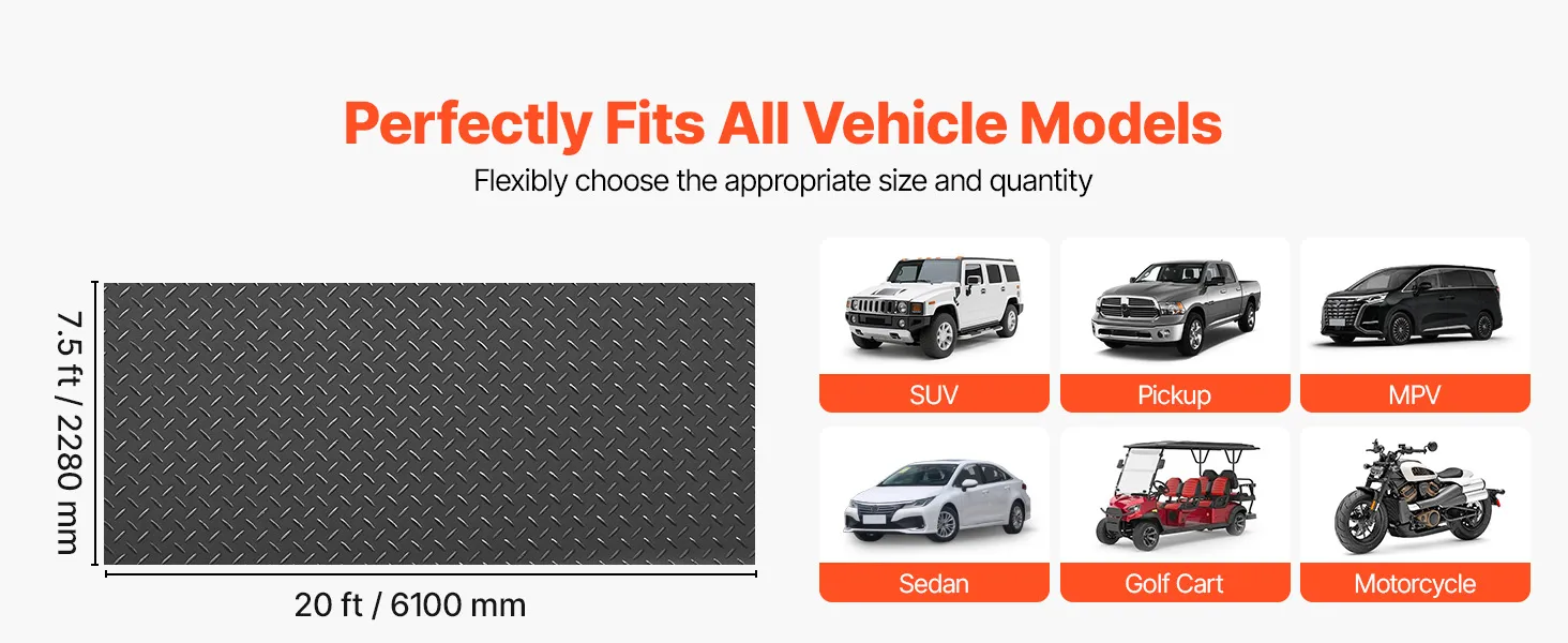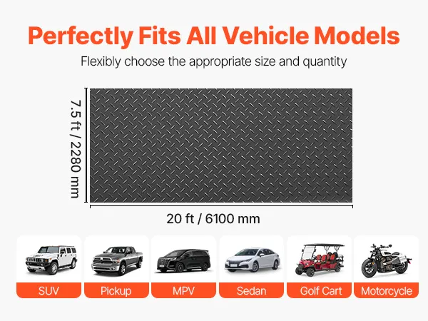 • Larger Coverage: This garage floor roll is 7.5 x 20 ft / 2280 x 6100 mm with 150 sq ft area, fitting mid-size SUVs, compact SUVs, sports cars, motorcycles, and golf carts, also ideal for warehouses, trunks, or sidewalks. Measure size before purchase