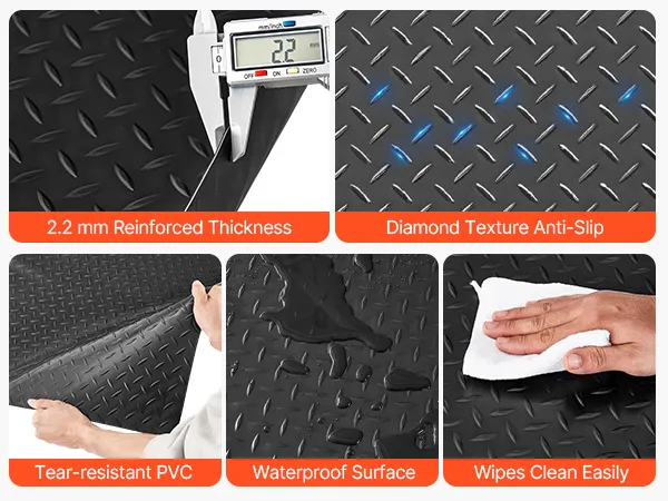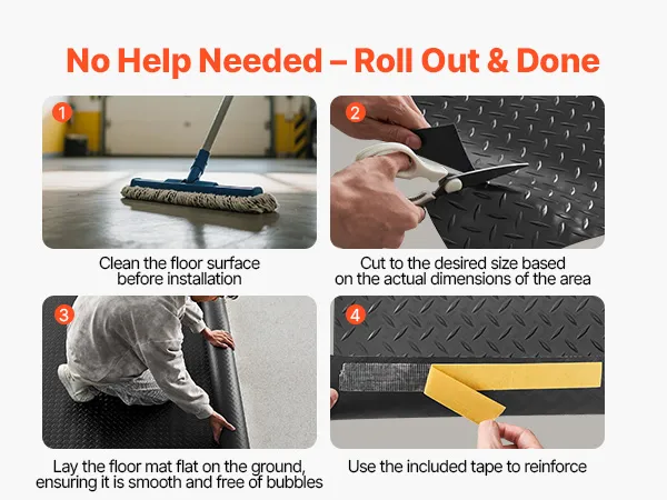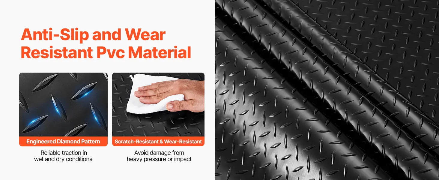 • Stable Non-Slip: The diamond pattern surface of this garage floor mat roll is designed to reduce slipping and enhance traction, allowing secure walking and parking even in wet conditions. Use the included double-sided tape for strong, lasting adhesion