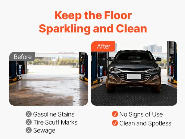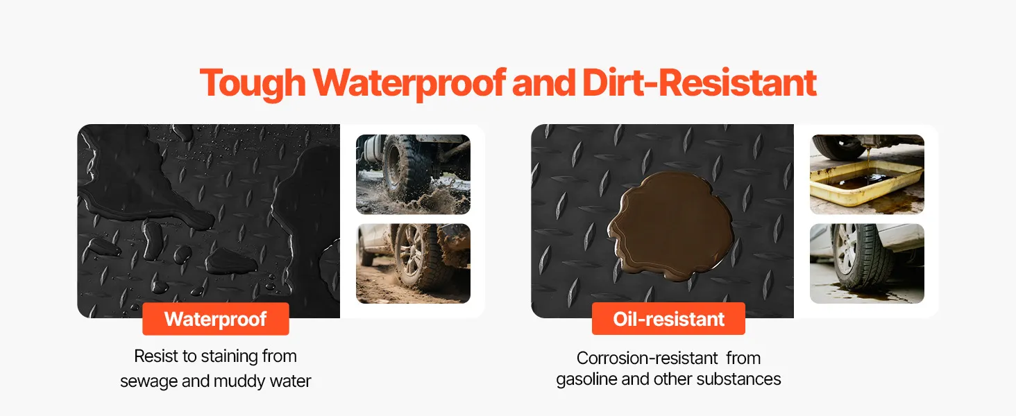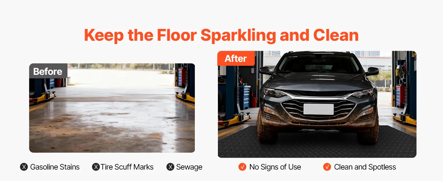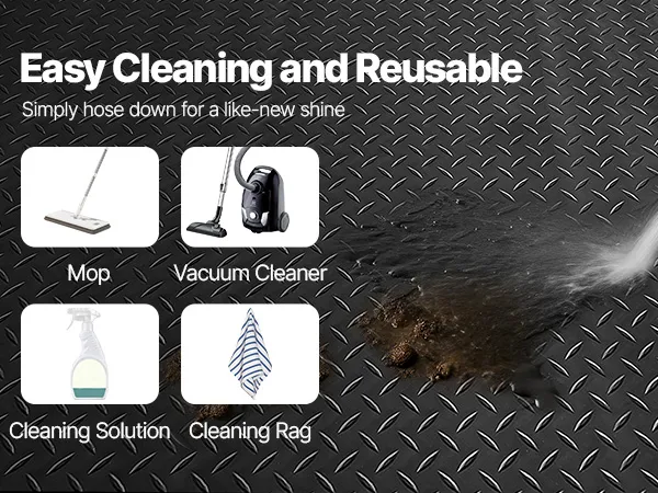 • Easy to Clean: Made of waterproof PVC, this garage flooring roll resists dirt, mud, vehicle fluids, and chemicals, keeping it stain-free. Simply clean with a vacuum, mop, or damp cloth, maintaining a fresh surface even under heavy use