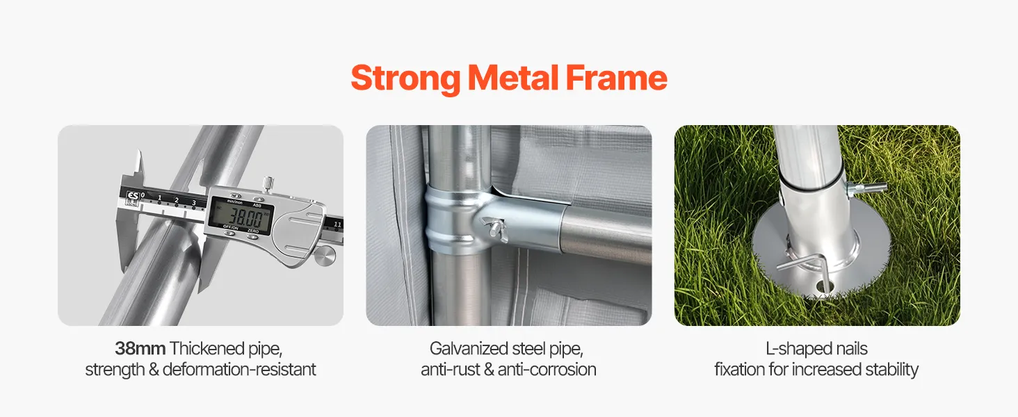 Изготовленный из прочной оцинкованной стали, прочный переносной навес на открытом воздухе обеспечивает полную защиту находящихся внутри предметов.