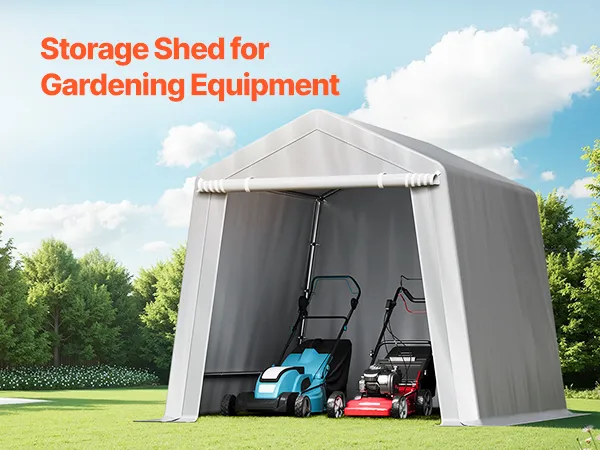 VEVOR Outdoor Storage Shed, 8 x 8 ft Portable Storage Tent with Roll-up Door & Vents, Waterproof Canopy Shed Shelter, Heavy Duty Frame, Patio Garage Carport for Motorcycle, Lawn Mower, Bike, Grey