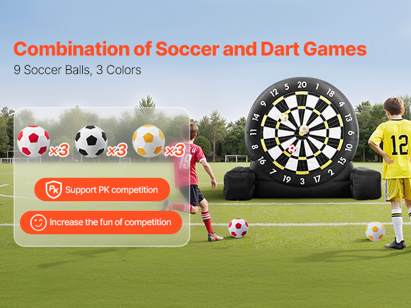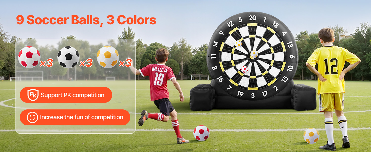 VEVOR Inflatable Soccer Dart Board, over 8 ft High Giant Soccer Dart Board with 9 Kick Balls & Air Pump, 2-Minutes Setup & Storage Bag for Easy Carrying, for Giant Yard Games, Giant Kick Darts Game