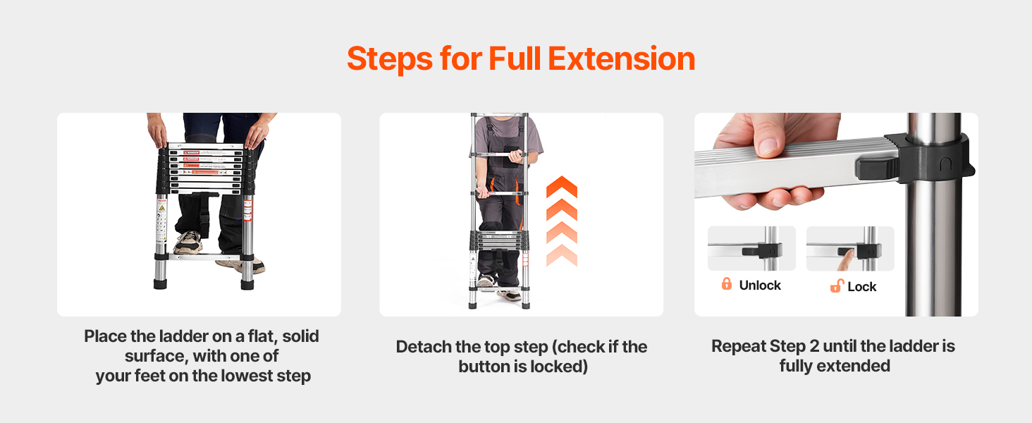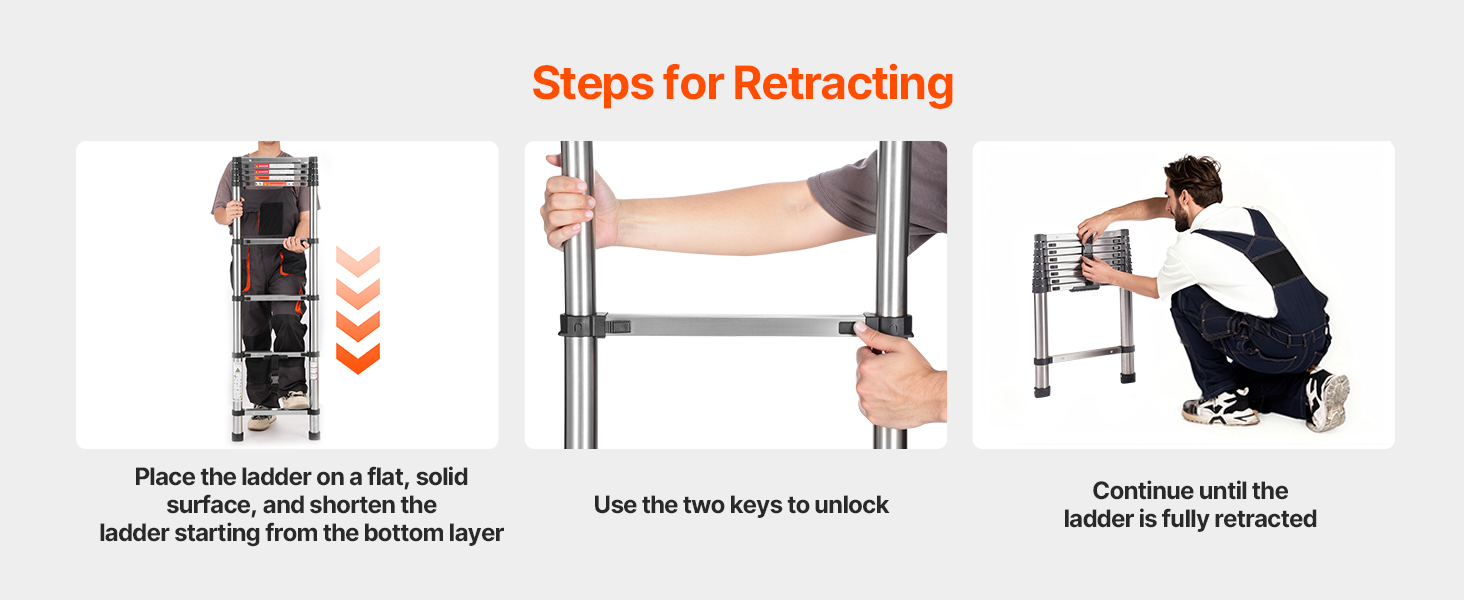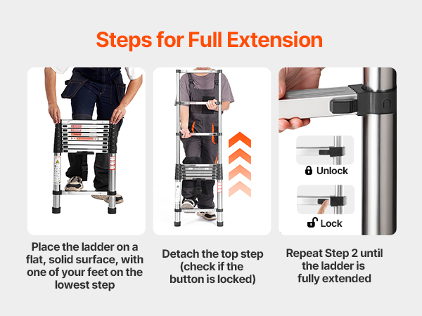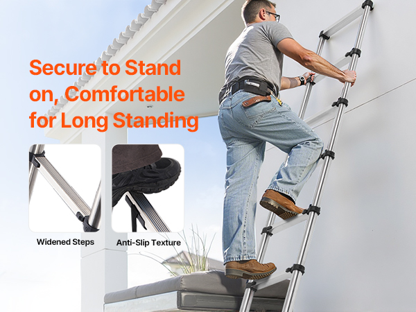 Made with durable steel and nylon connectors for extra strength, this ladder provides stability for both home and commercial use with 330 lbs / 150 kg (75°) load capacity. The multi-button retraction design ensures simple operation. Wide steps offer comfort and stability, making high-altitude tasks a lot easier.