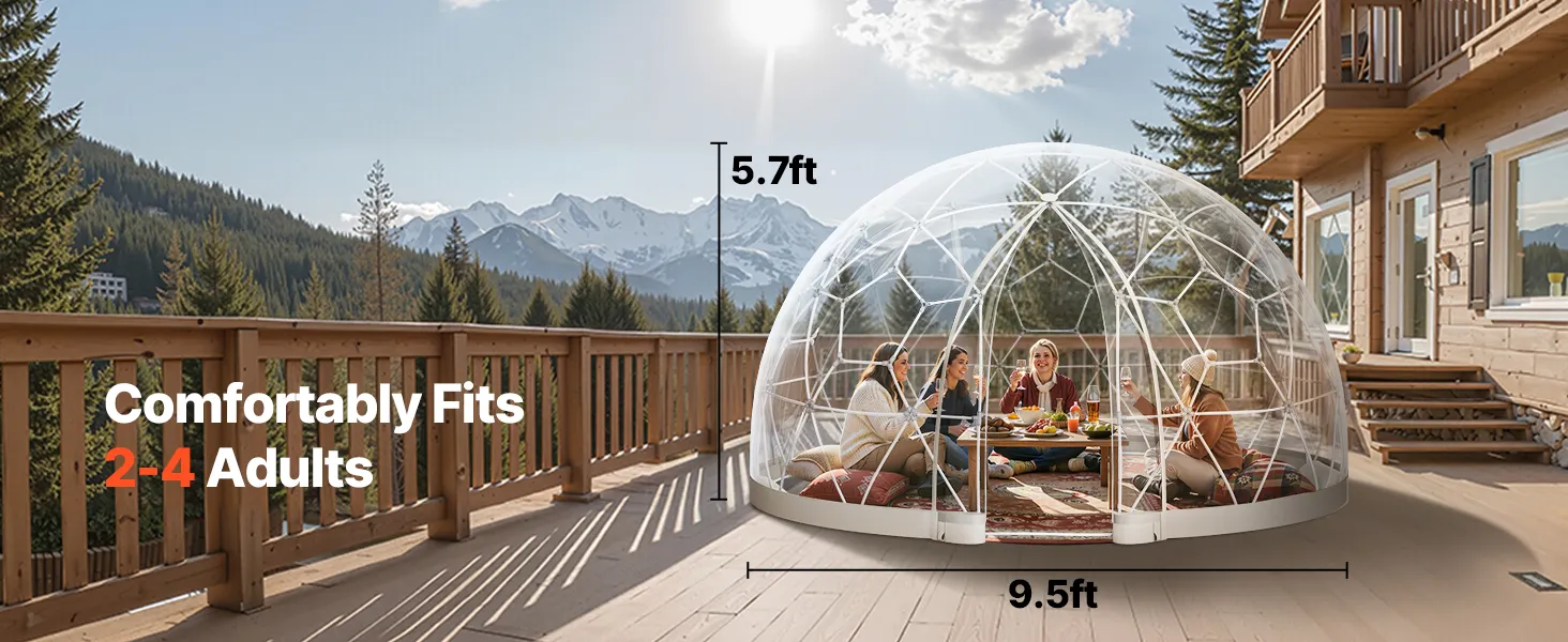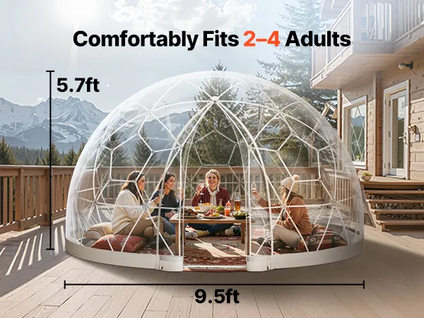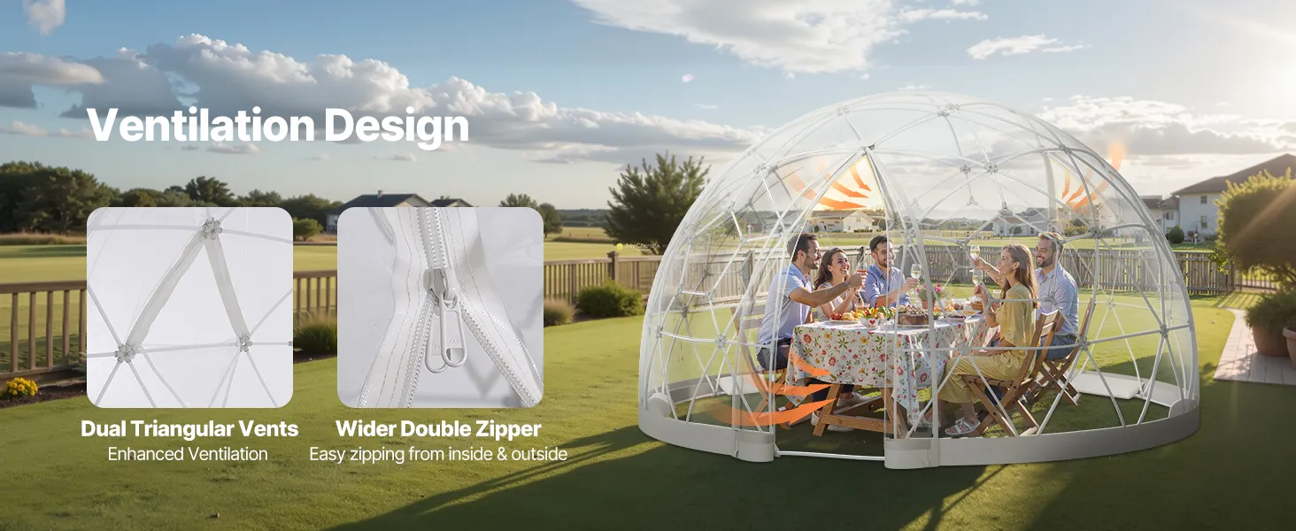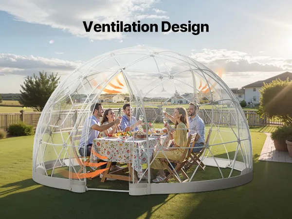 A2: The bubble tent is equipped with triangular windows and roll-up doors, ensuring cross-ventilation.