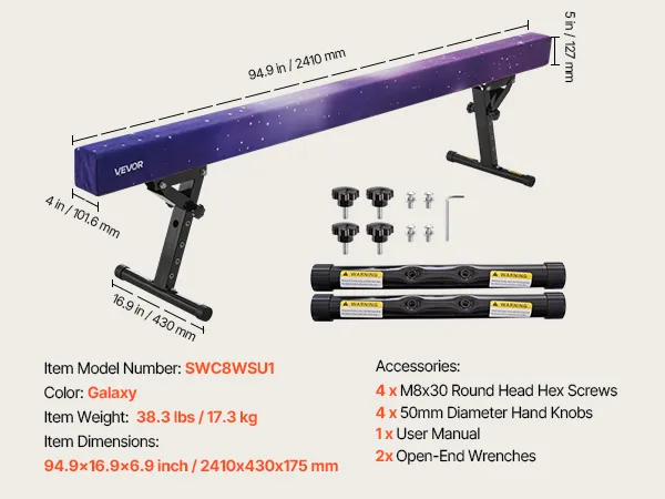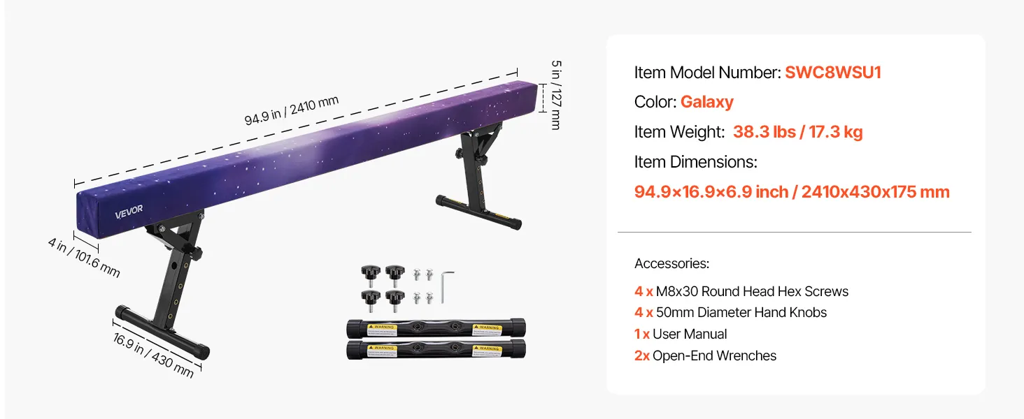 VEVOR Adjustable Balane Beam for Kids, 8FT Gymnastics Beam, High and Low Floor Beams of 5 Adjustable Heights for All Gymnastic Levels, Professional Gymnastic Equipment for Home and Gym Center, Galaxy