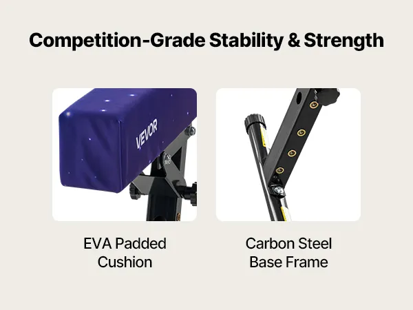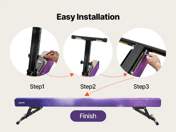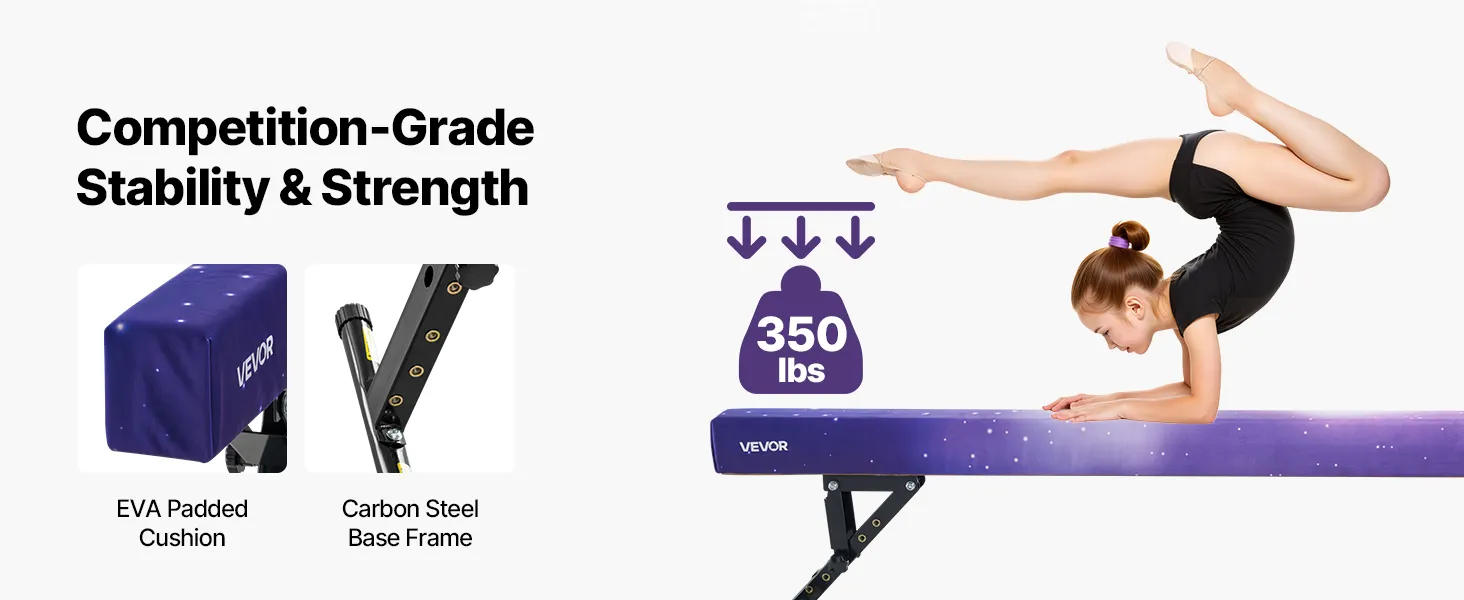 • Stable Structure: Built with a reinforced carbon steel base and heavy-duty bolts, this gymnastics beam supports up to 350 lbs / 158.7 kg. Its unique frame design enhances stability, providing a more reliable structure for practicing turns, jumps, back handsprings, kicks, and more