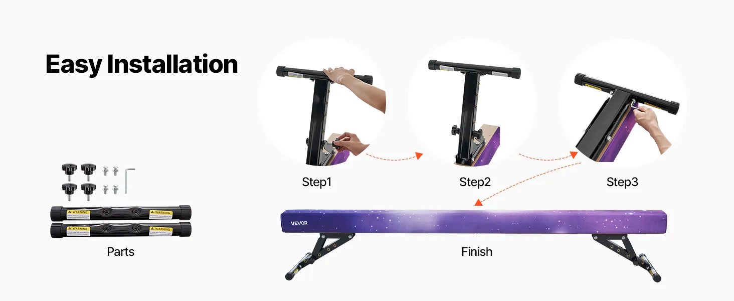 • Foldable & Space-Saving: Pre-assembled for quick setup—just adjust to the desired height and lock in place. The foldable legs tuck neatly against the beam for compact storage, making it ideal for home use, gymnastics clubs, or advanced training. A great present for kids and teens